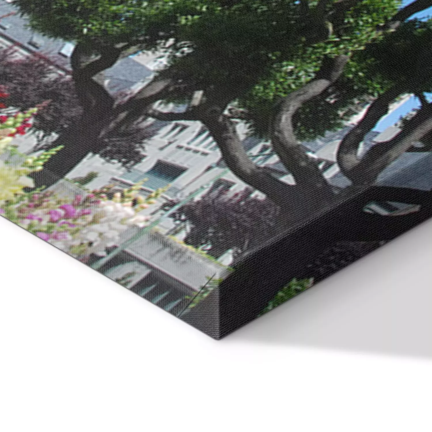 De print wordt aangebracht op hoogwaardig canvas dat op een schildersweefgetouw (spieraam) wordt gespannen. Omdat de print de zijranden bedekt, hoeft het ontwerp niet met een extra kader te worden omlijst. Wij raden ook composities aan die uit meerdere foto's bestaan en zo een coherente compositie vormen.
