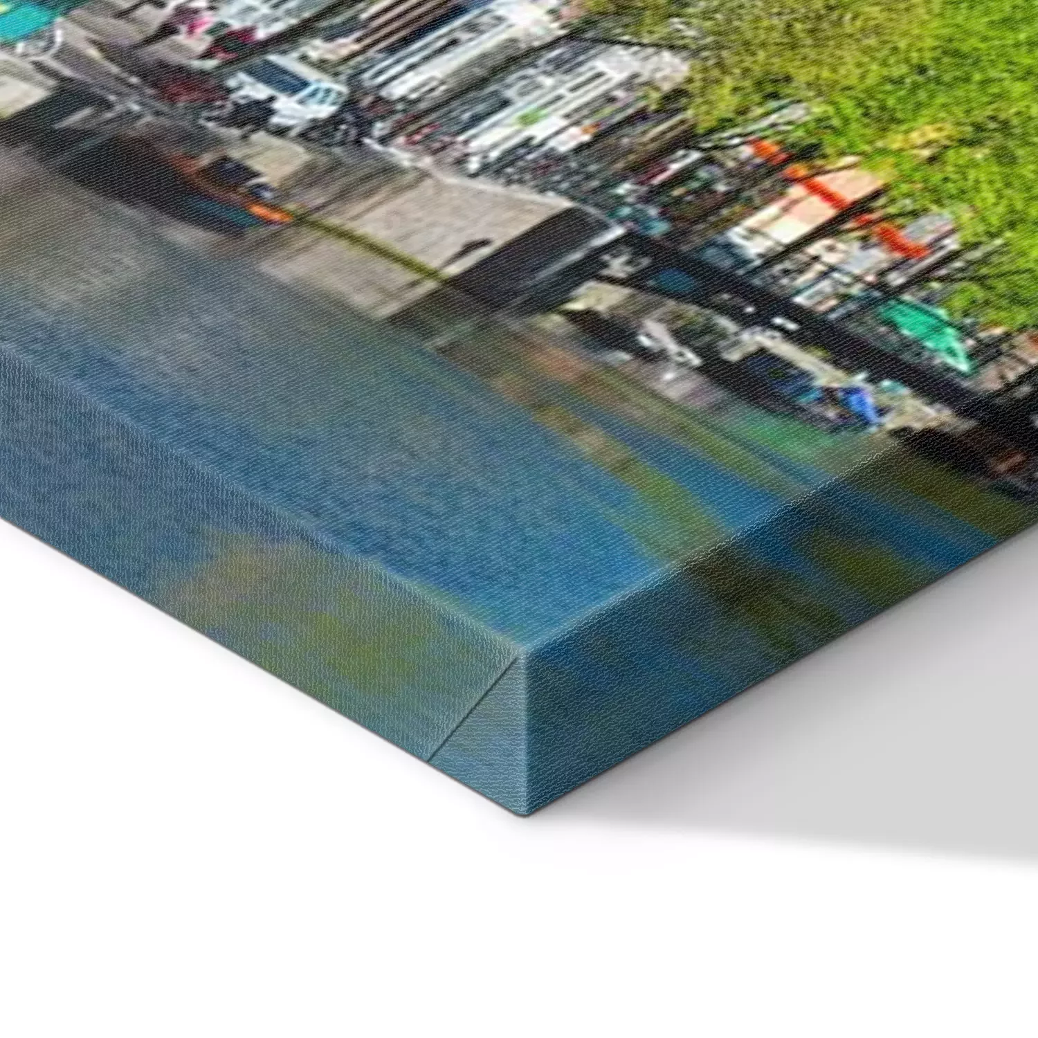 De print wordt aangebracht op hoogwaardig canvas dat op een schildersweefgetouw (spieraam) wordt gespannen. Omdat de print de zijranden bedekt, hoeft het ontwerp niet met een extra kader te worden omlijst. Wij raden ook composities aan die uit meerdere foto's bestaan en zo een coherente compositie vormen.