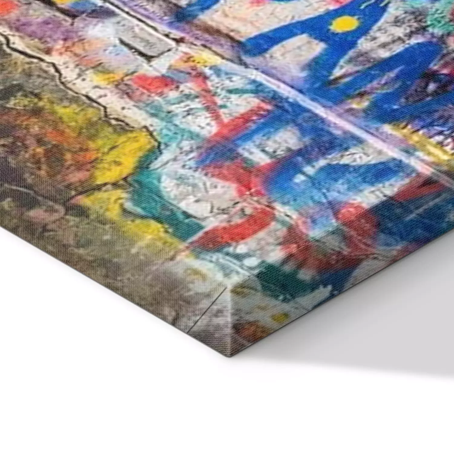 De print wordt aangebracht op hoogwaardig canvas dat op een schildersweefgetouw (spieraam) wordt gespannen. Omdat de print de zijranden bedekt, hoeft het ontwerp niet met een extra kader te worden omlijst. Wij raden ook composities aan die uit meerdere foto's bestaan en zo een coherente compositie vormen.