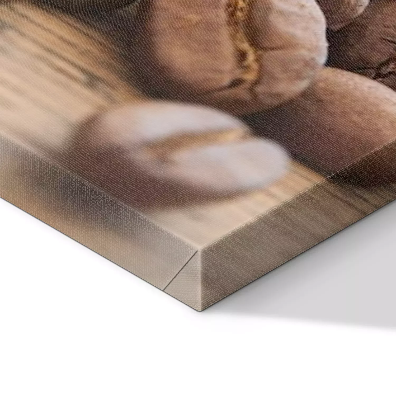 Canvas Grains de café en gros plan et tasse de café et cuillère sur tafel en vieux bois