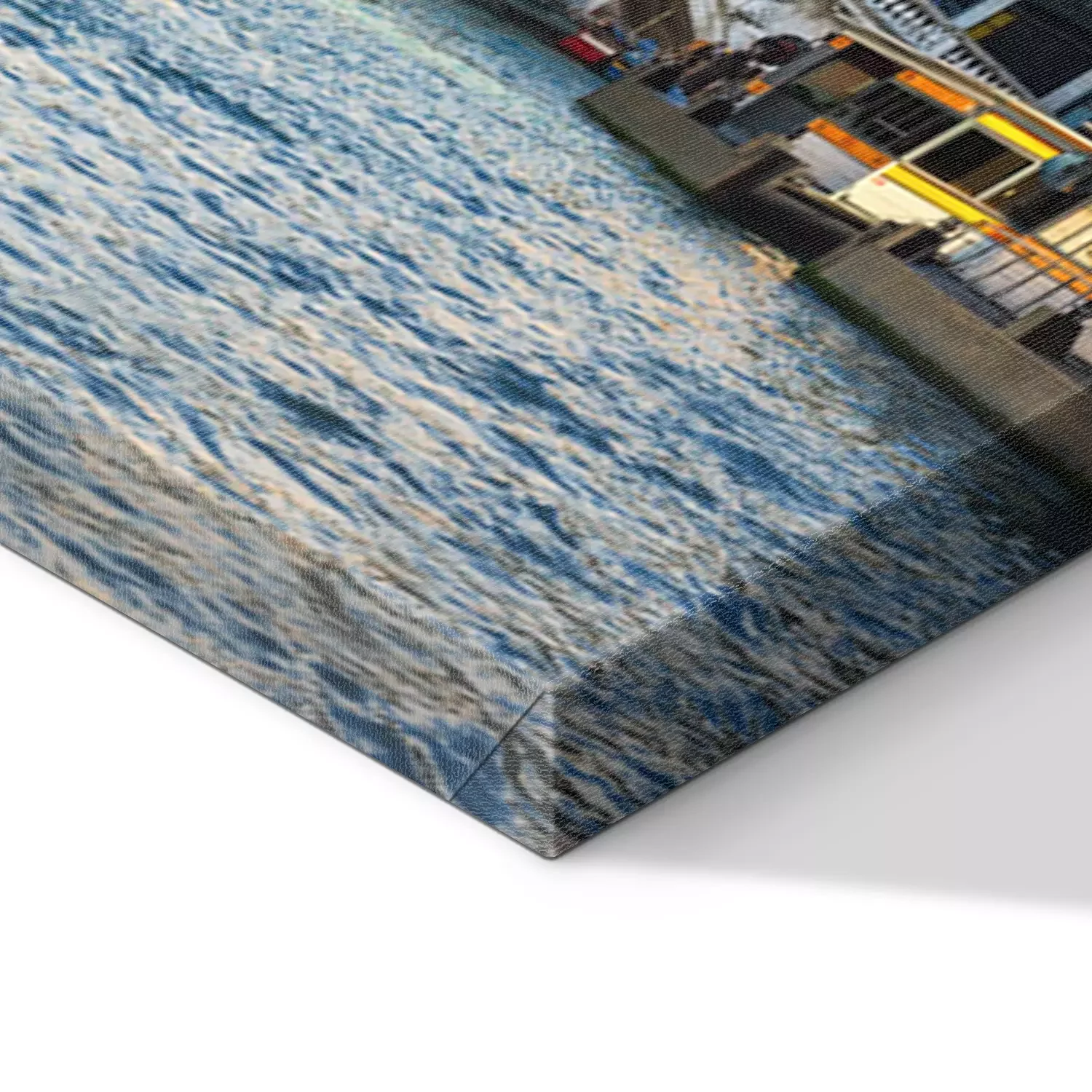 De print wordt aangebracht op hoogwaardig canvas dat op een schildersweefgetouw (spieraam) wordt gespannen. Omdat de print de zijranden bedekt, hoeft het ontwerp niet met een extra kader te worden omlijst. Wij raden ook composities aan die uit meerdere foto's bestaan en zo een coherente compositie vormen.