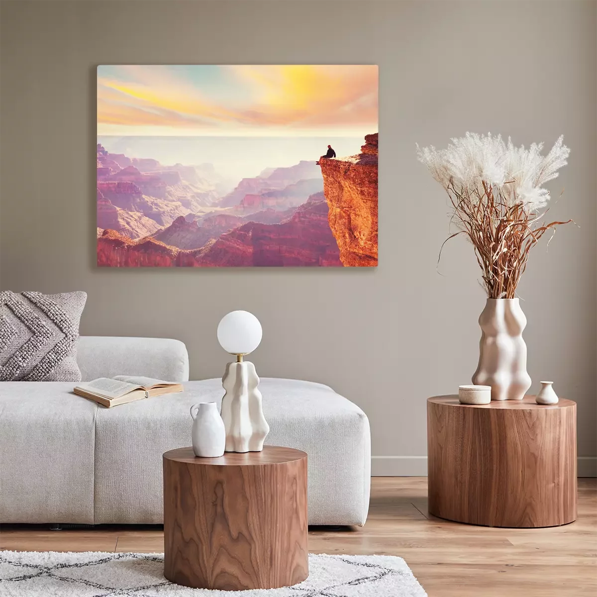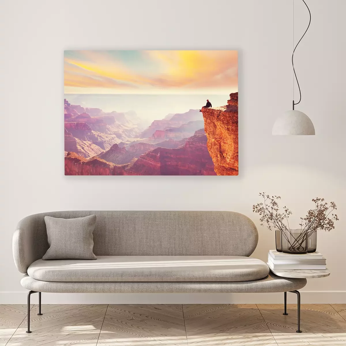 De print wordt aangebracht op hoogwaardig canvas dat op een schildersweefgetouw (spieraam) wordt gespannen. Omdat de print de zijranden bedekt, hoeft het ontwerp niet met een extra kader te worden omlijst. Wij raden ook composities aan die uit meerdere foto's bestaan en zo een coherente compositie vormen.