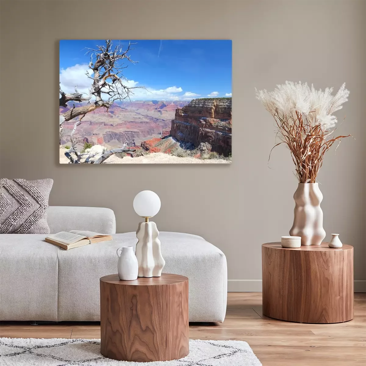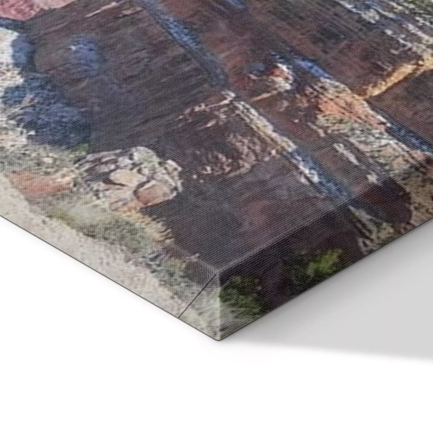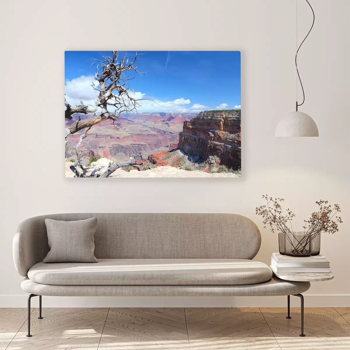 De print wordt aangebracht op hoogwaardig canvas dat op een schildersweefgetouw (spieraam) wordt gespannen. Omdat de print de zijranden bedekt, hoeft het ontwerp niet met een extra kader te worden omlijst. Wij raden ook composities aan die uit meerdere foto's bestaan en zo een coherente compositie vormen.