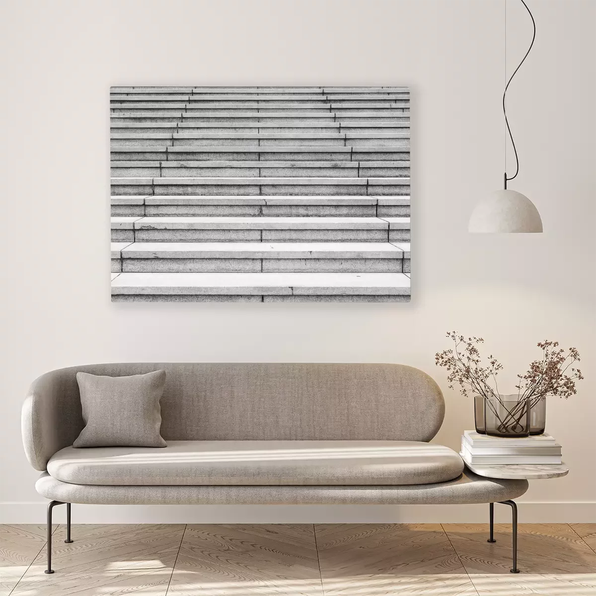 De print wordt aangebracht op hoogwaardig canvas dat op een schildersweefgetouw (spieraam) wordt gespannen. Omdat de print de zijranden bedekt, hoeft het ontwerp niet met een extra kader te worden omlijst. Wij raden ook composities aan die uit meerdere foto's bestaan en zo een coherente compositie vormen.