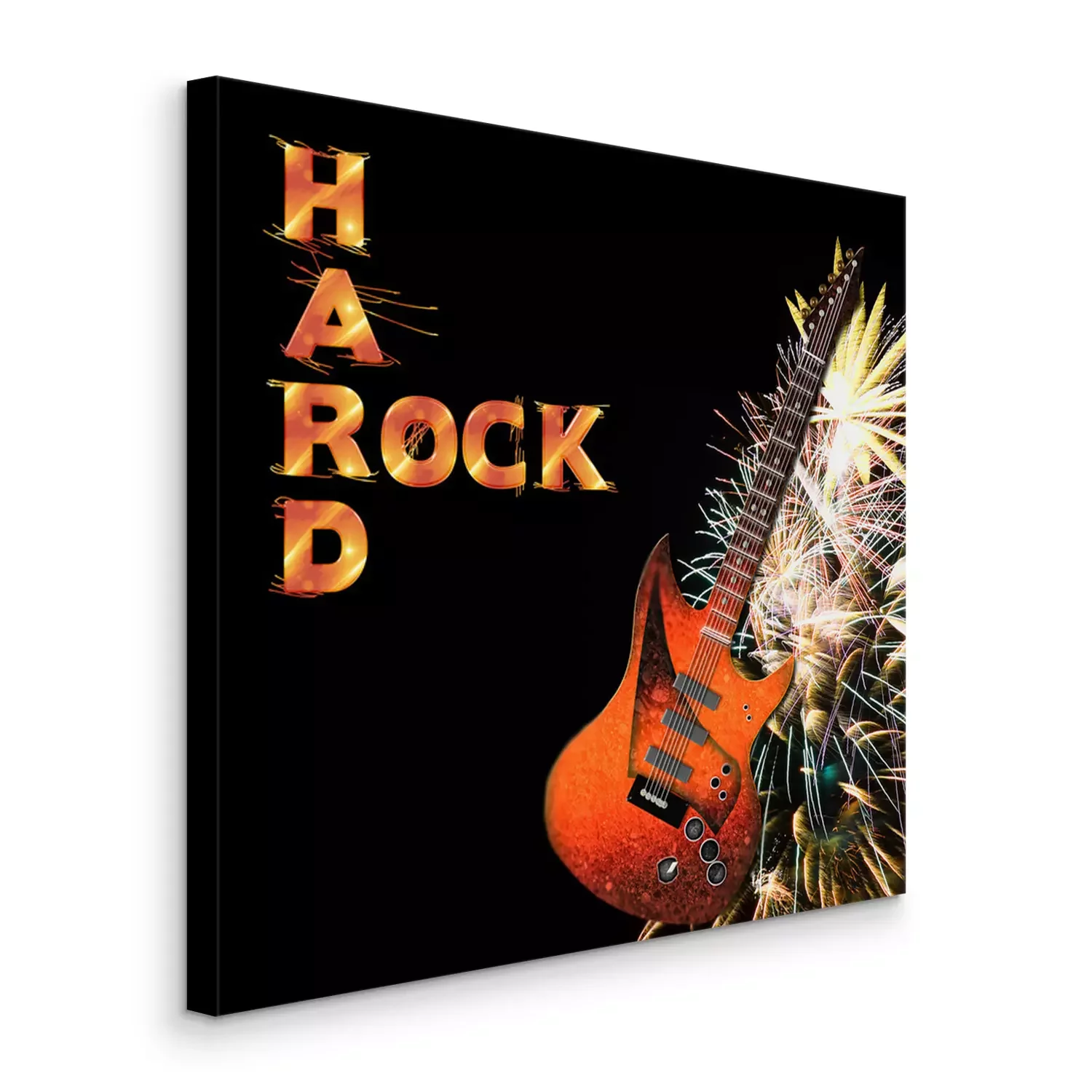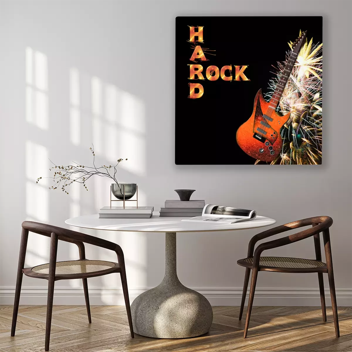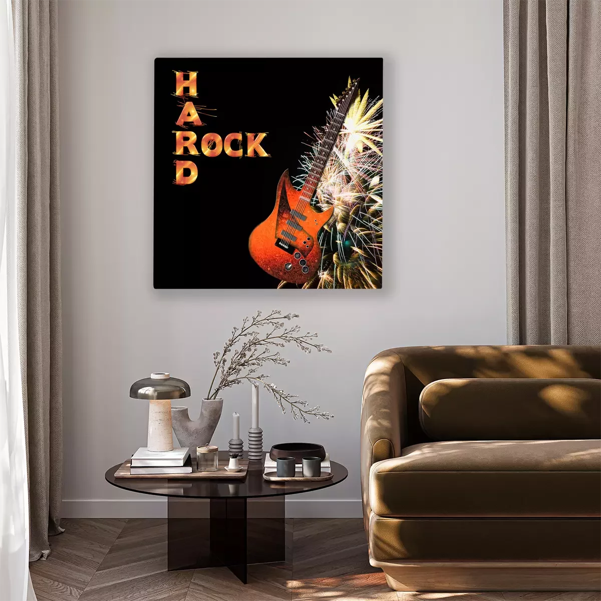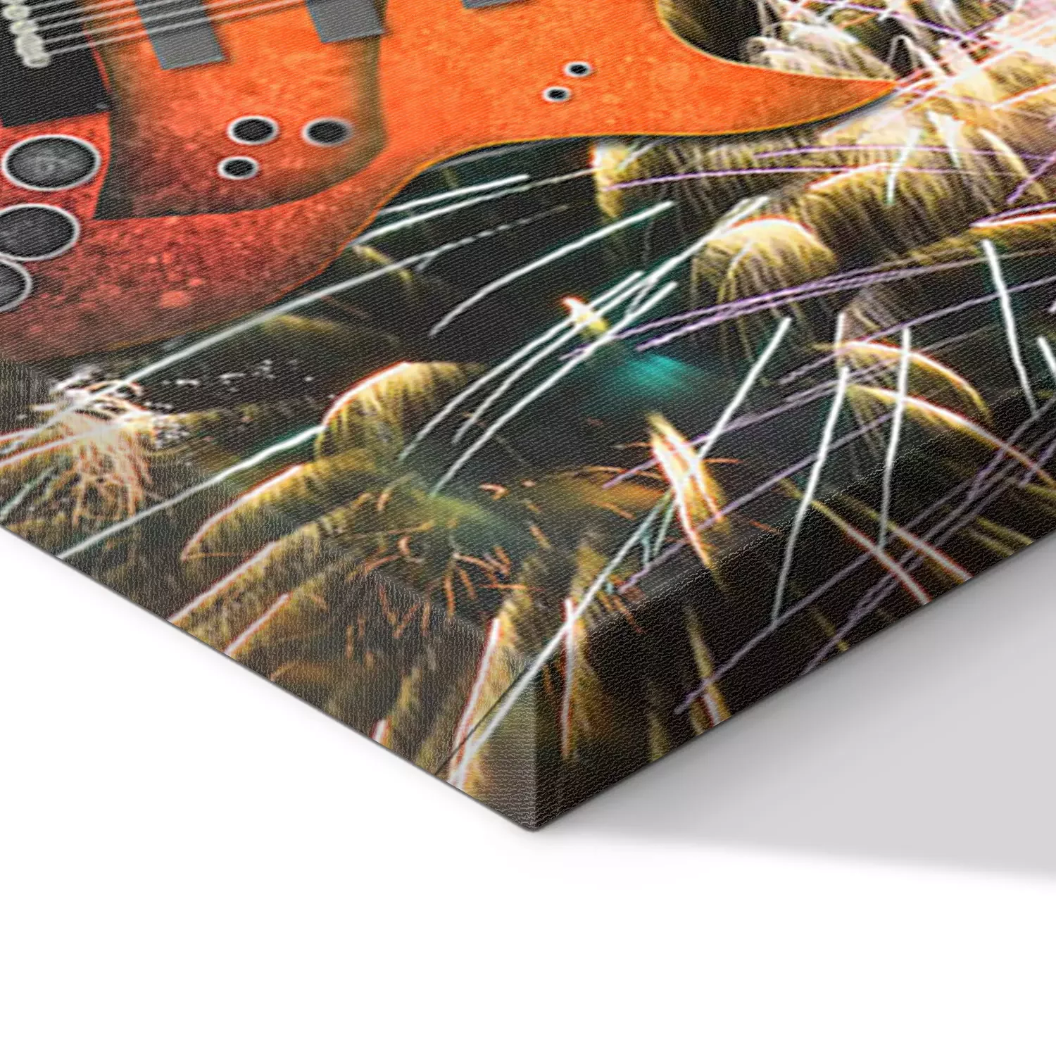 Canvas: Graphic background of Electric Guitar and fireorks isolated on black, Hard Rock.