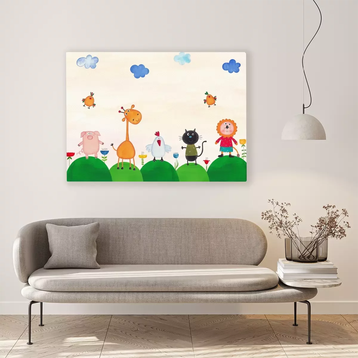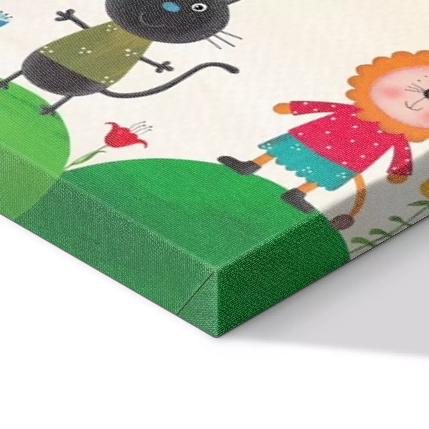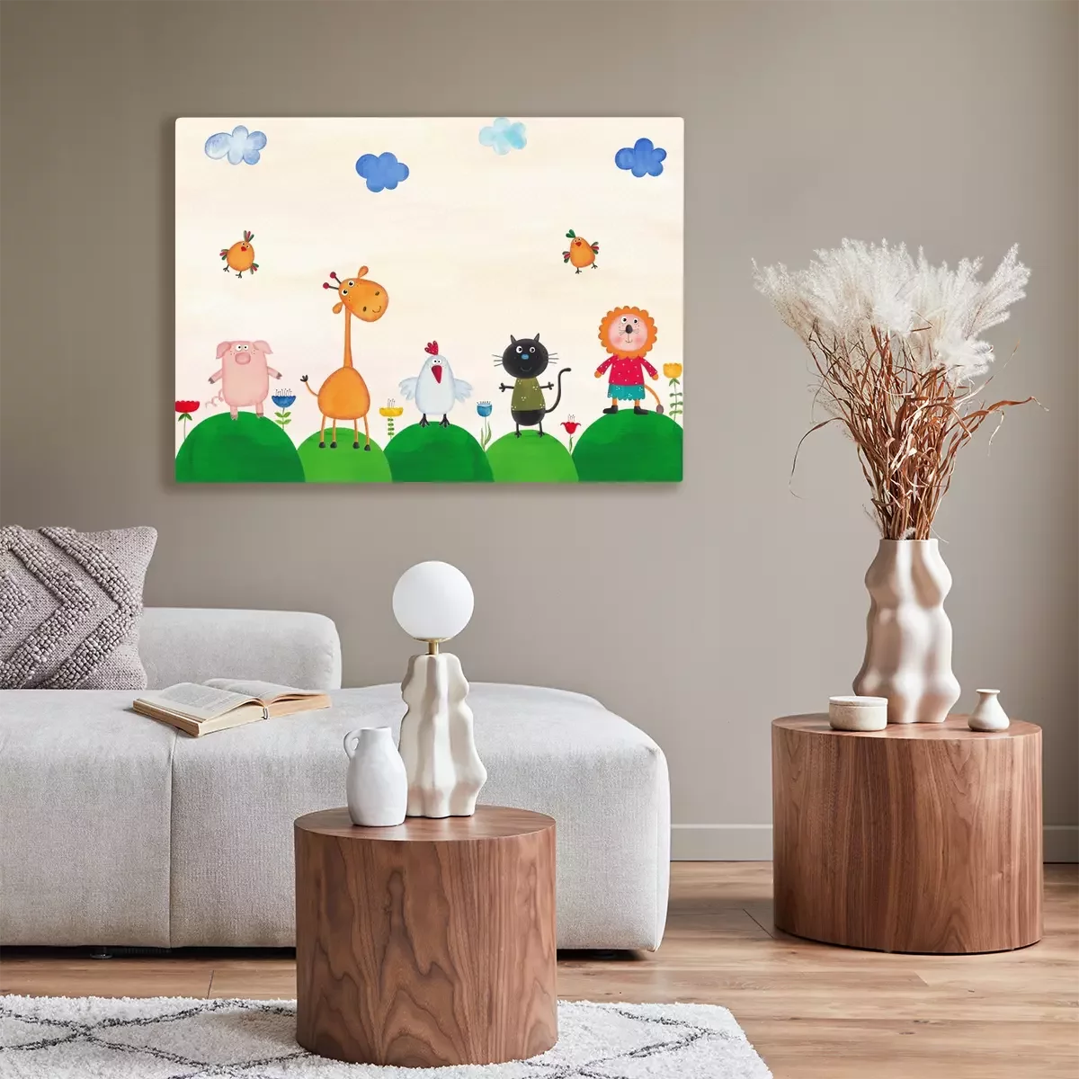 Canvas: Grappige dieren op groene heuvels