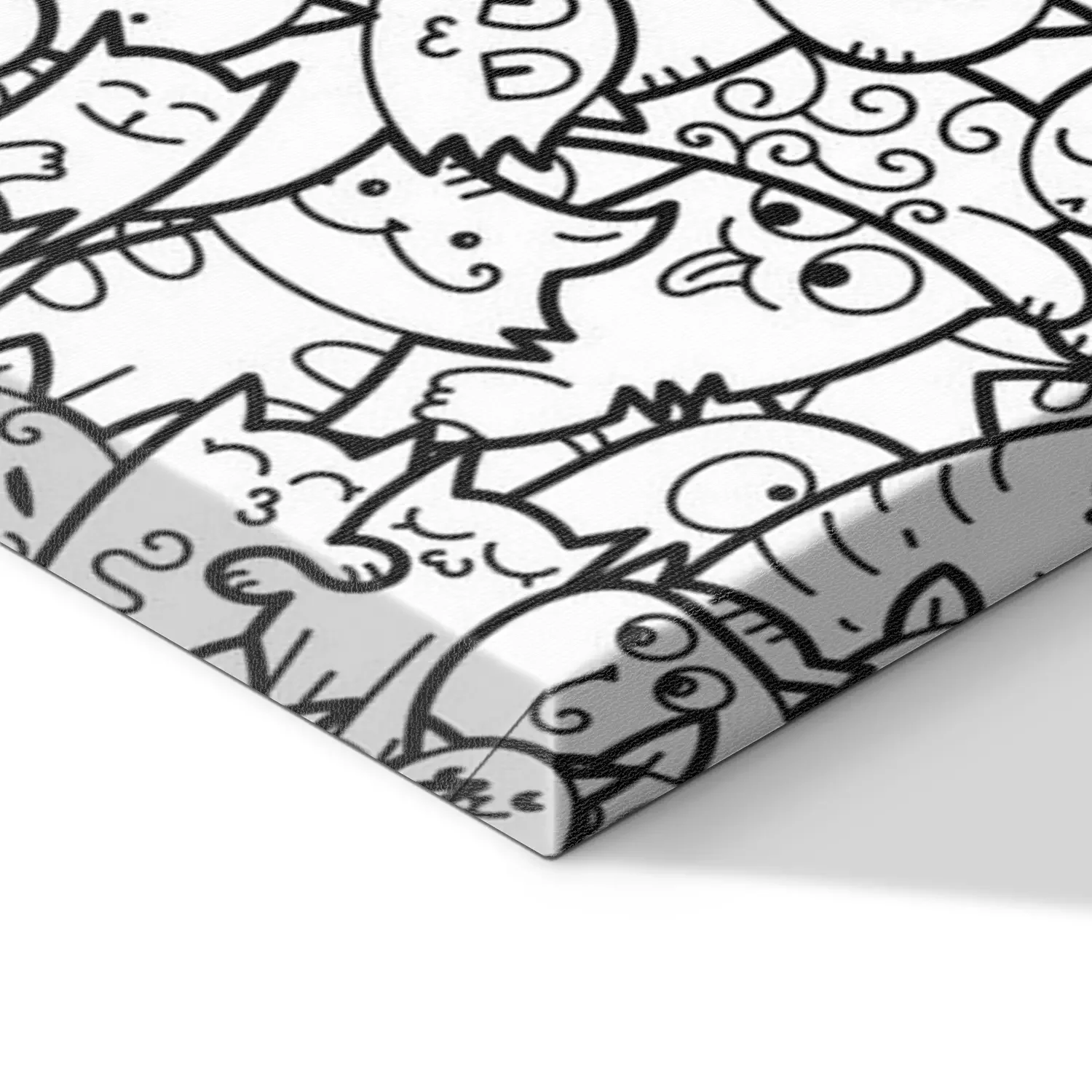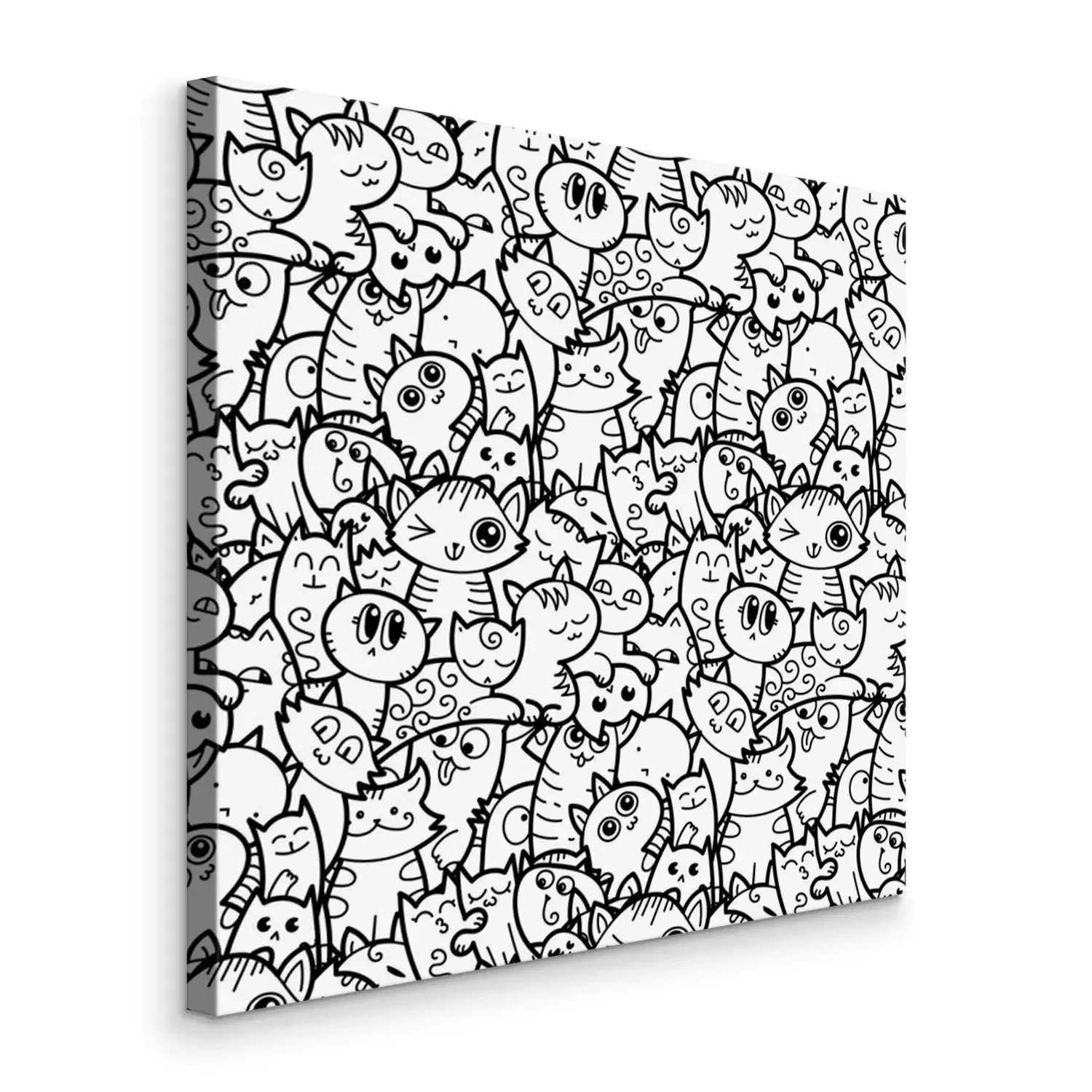 Canvas: Grappige doodle katten en kittens naadloze patroon voor prints, ontwerpen en kleurboeken