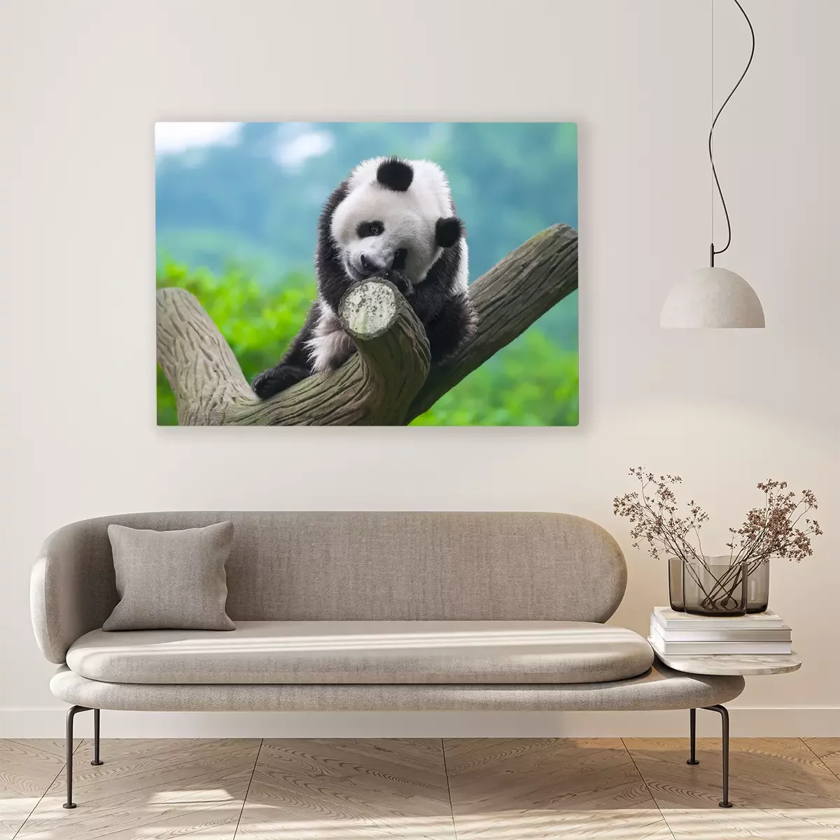Canvas: Grappige panda op de boom