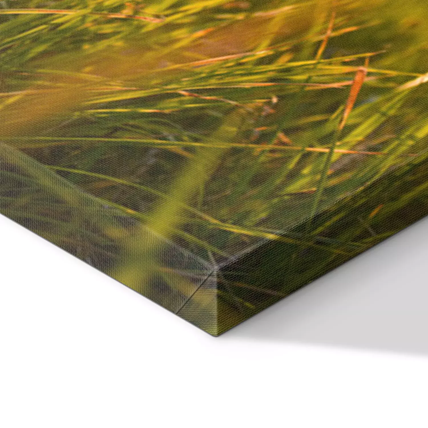 De print wordt aangebracht op hoogwaardig canvas dat op een schildersweefgetouw (spieraam) wordt gespannen. Omdat de print de zijranden bedekt, hoeft het ontwerp niet met een extra kader te worden omlijst. Wij raden ook composities aan die uit meerdere foto's bestaan en zo een coherente compositie vormen.