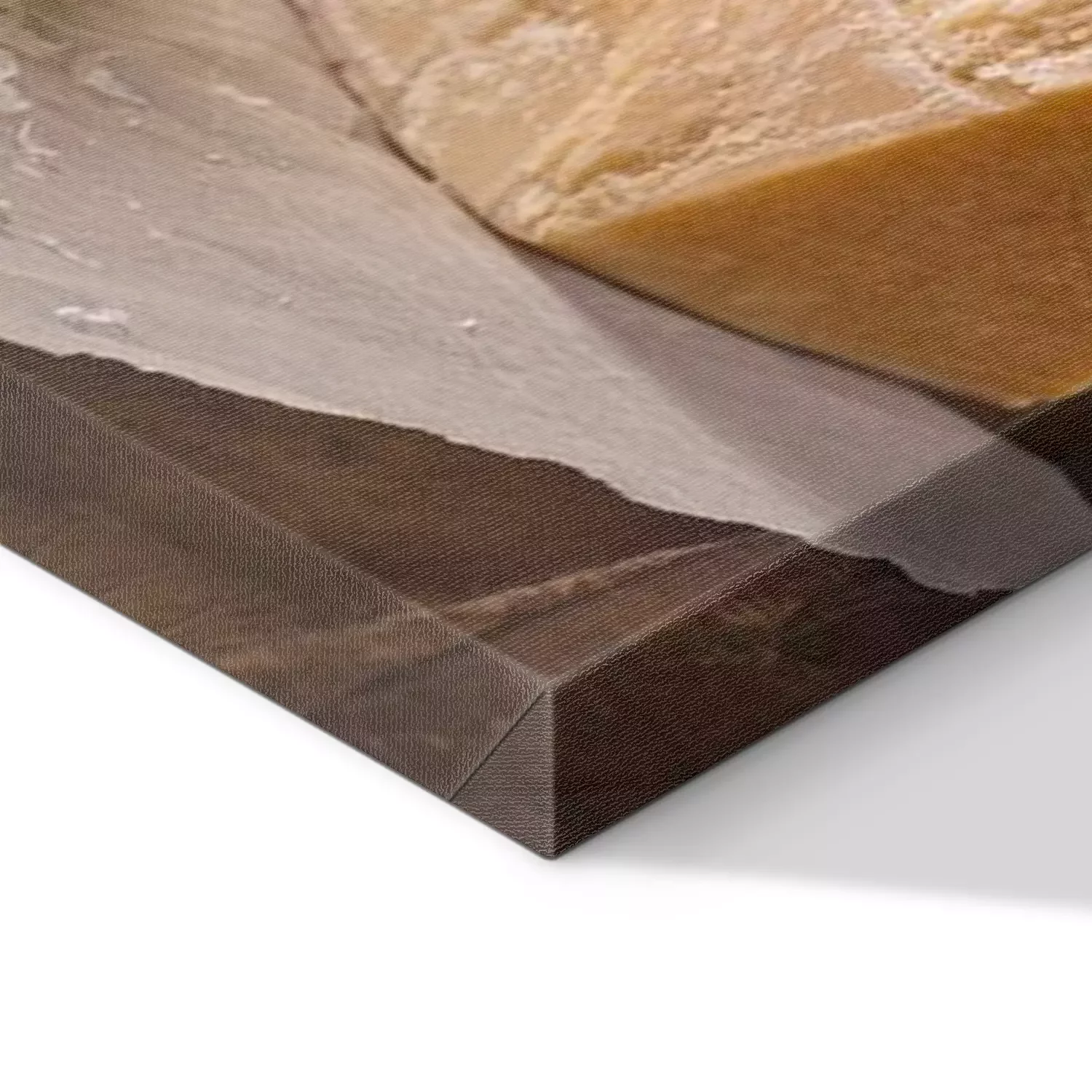 De print wordt aangebracht op hoogwaardig canvas dat op een schildersweefgetouw (spieraam) wordt gespannen. Omdat de print de zijranden bedekt, hoeft het ontwerp niet met een extra kader te worden omlijst. Wij raden ook composities aan die uit meerdere foto's bestaan en zo een coherente compositie vormen.