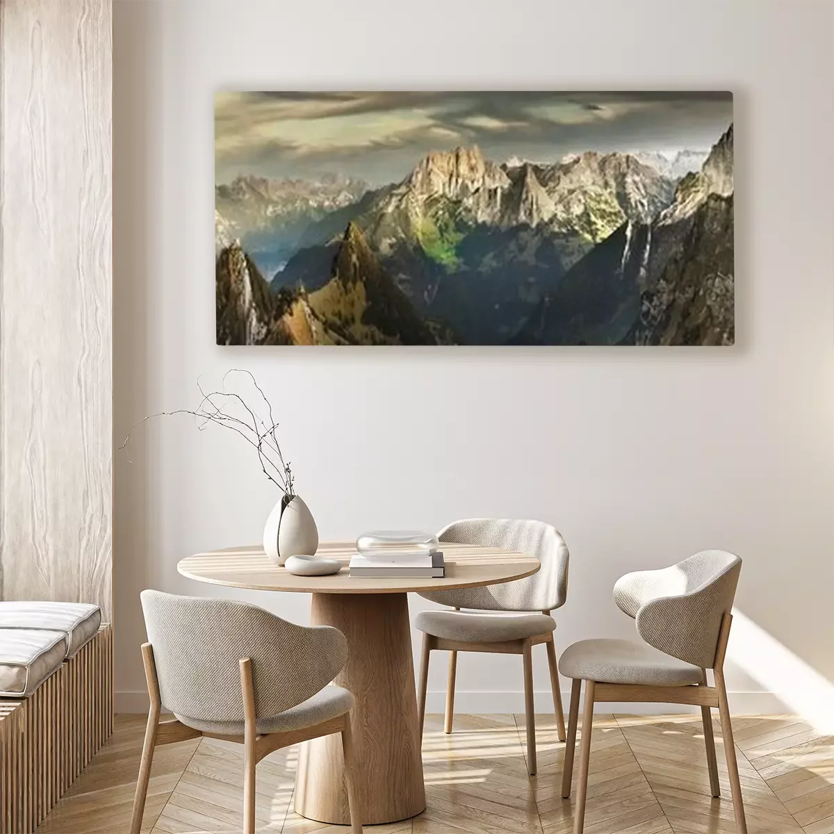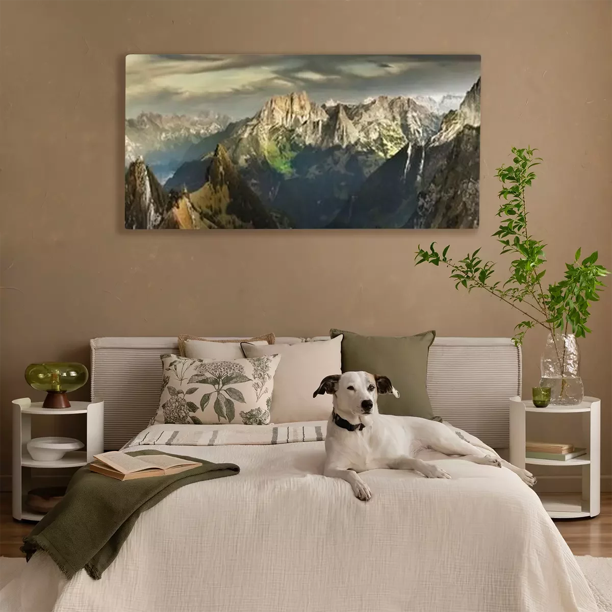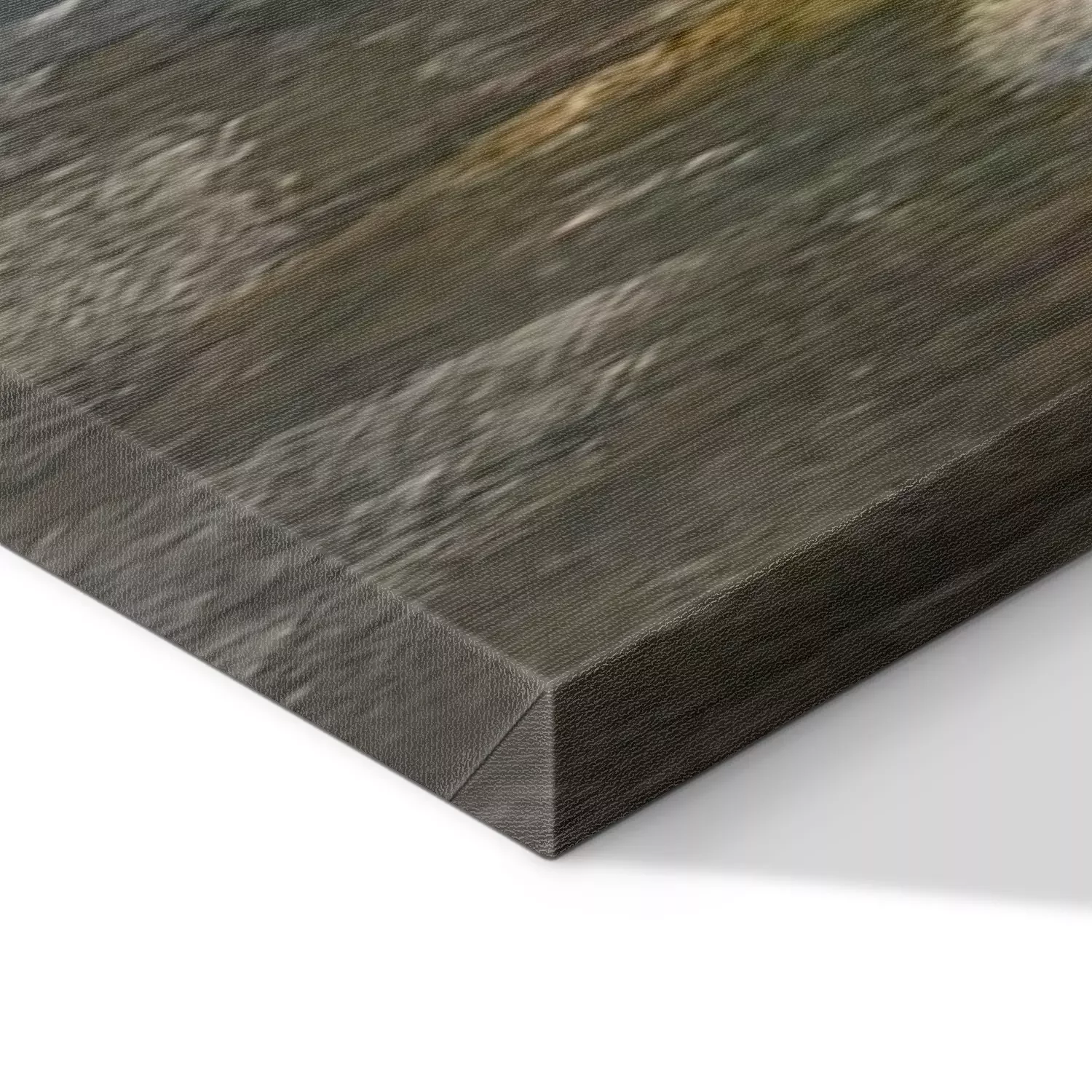 De print wordt aangebracht op hoogwaardig canvas dat op een schildersweefgetouw (spieraam) wordt gespannen. Omdat de print de zijranden bedekt, hoeft het ontwerp niet met een extra kader te worden omlijst. Wij raden ook composities aan die uit meerdere foto's bestaan en zo een coherente compositie vormen.