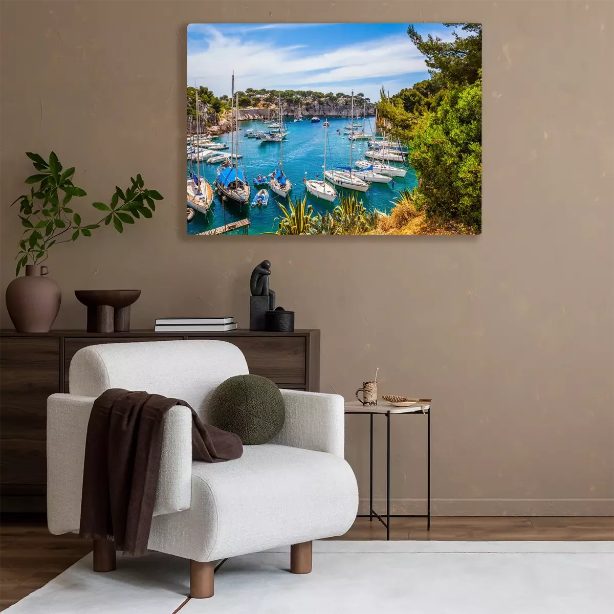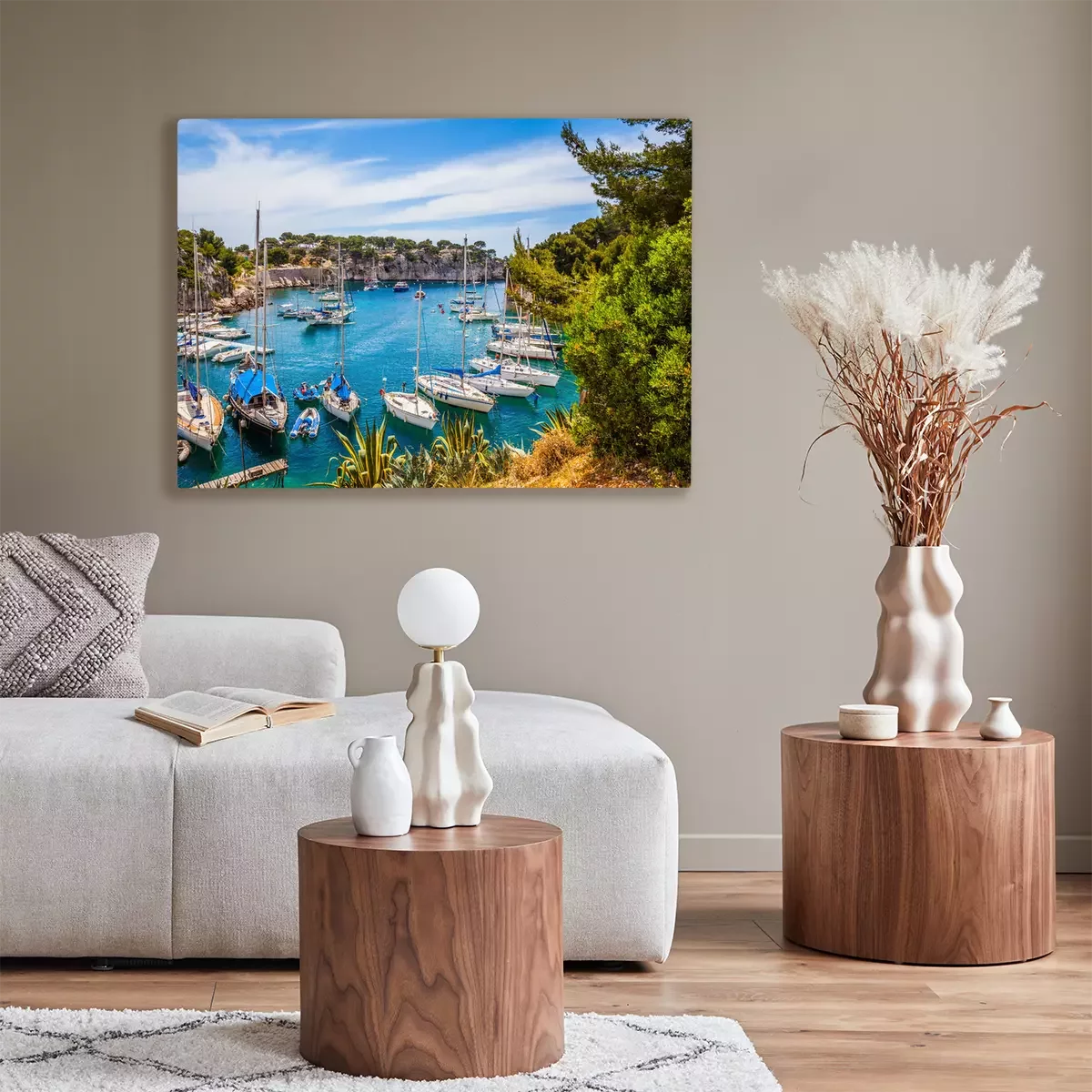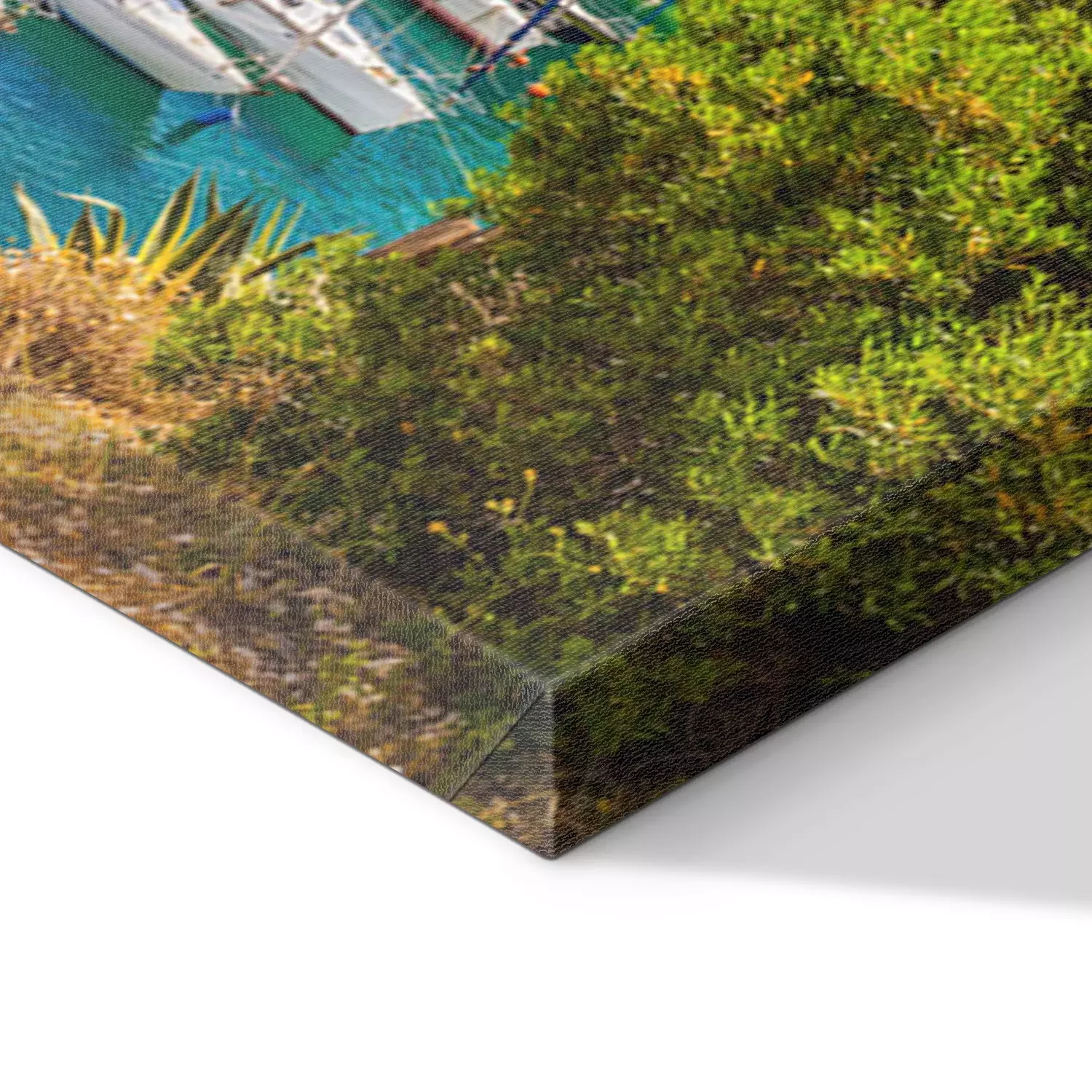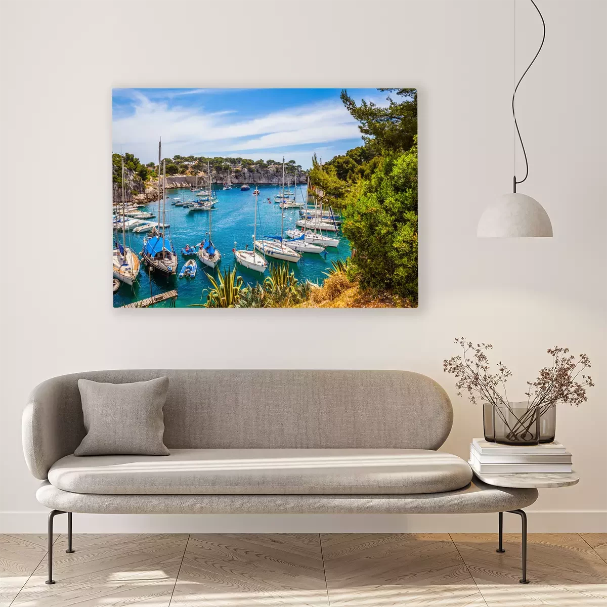 De print wordt aangebracht op hoogwaardig canvas dat op een schildersweefgetouw (spieraam) wordt gespannen. Omdat de print de zijranden bedekt, hoeft het ontwerp niet met een extra kader te worden omlijst. Wij raden ook composities aan die uit meerdere foto's bestaan en zo een coherente compositie vormen.