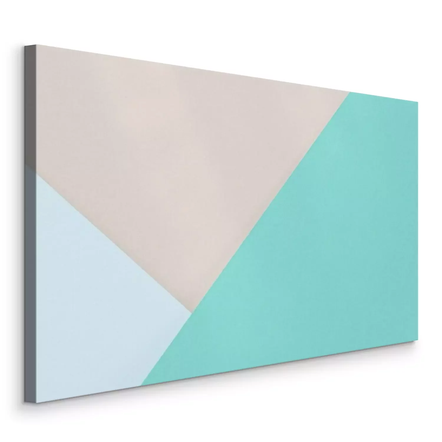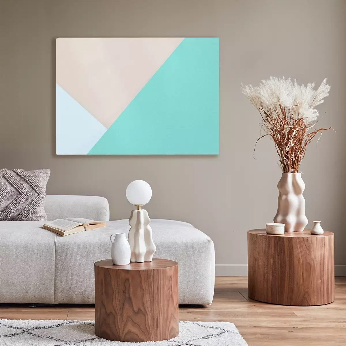 Canvas Green blue beige paper background. Geometric figures, shapes. Abstract geometric flat composition. Empty space on monochrome cardboard