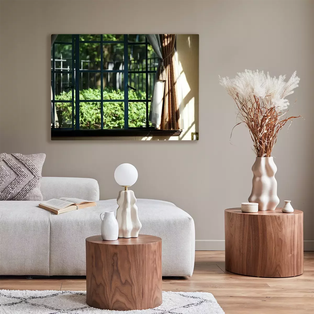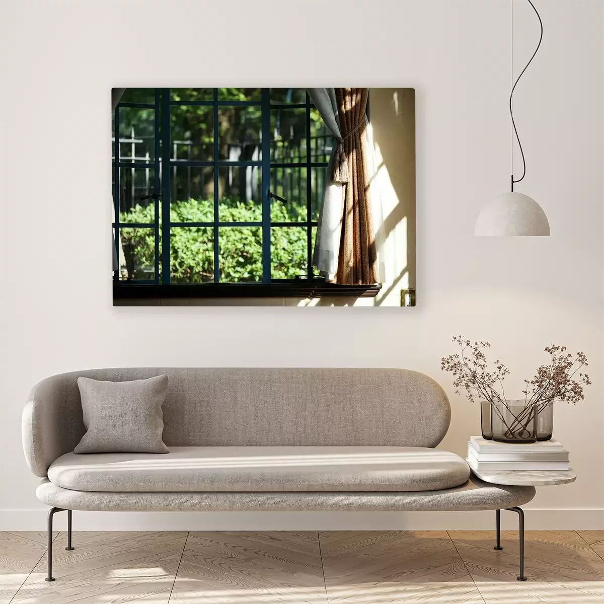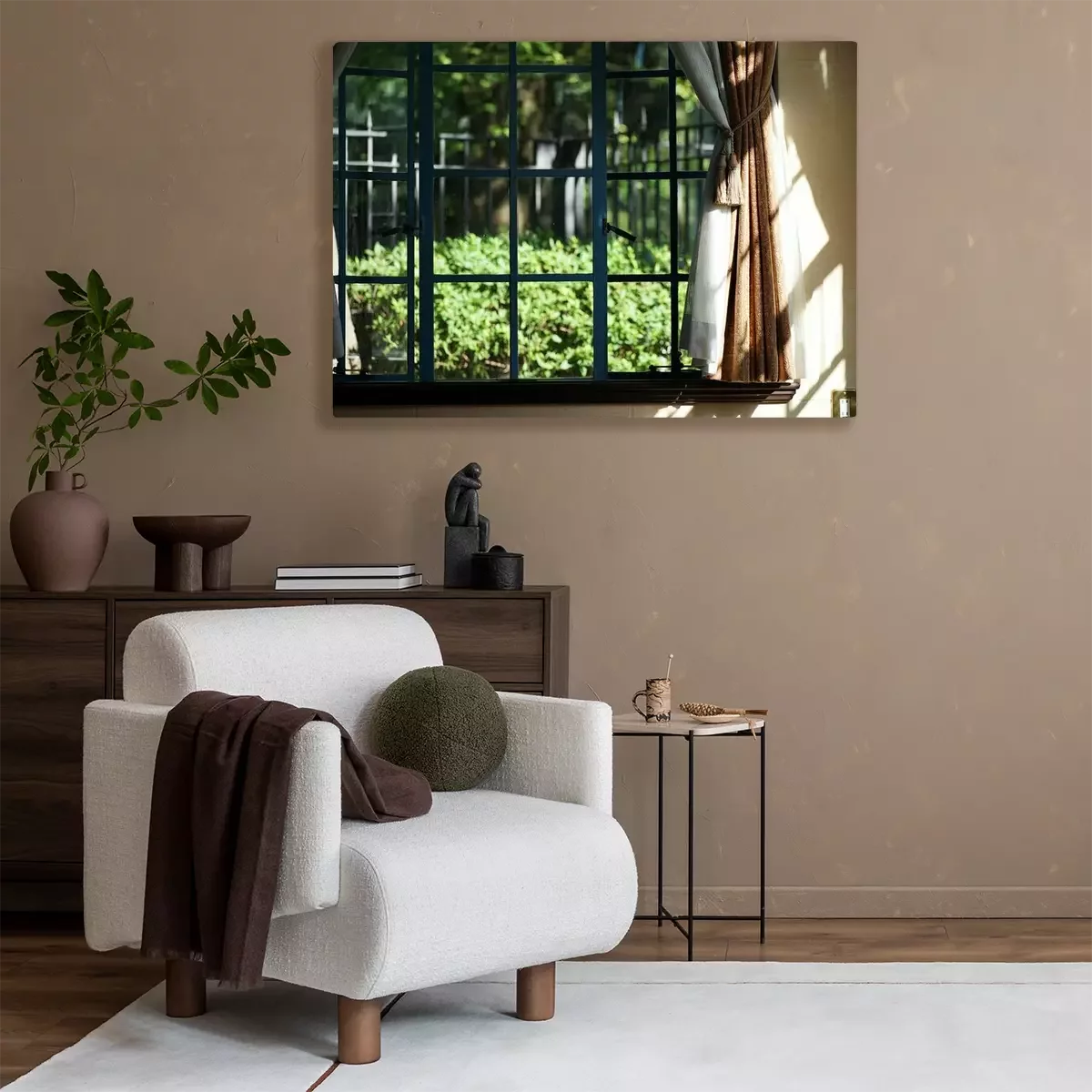 Canvas Green of the garden to see from the window of the room of the day when it was fine