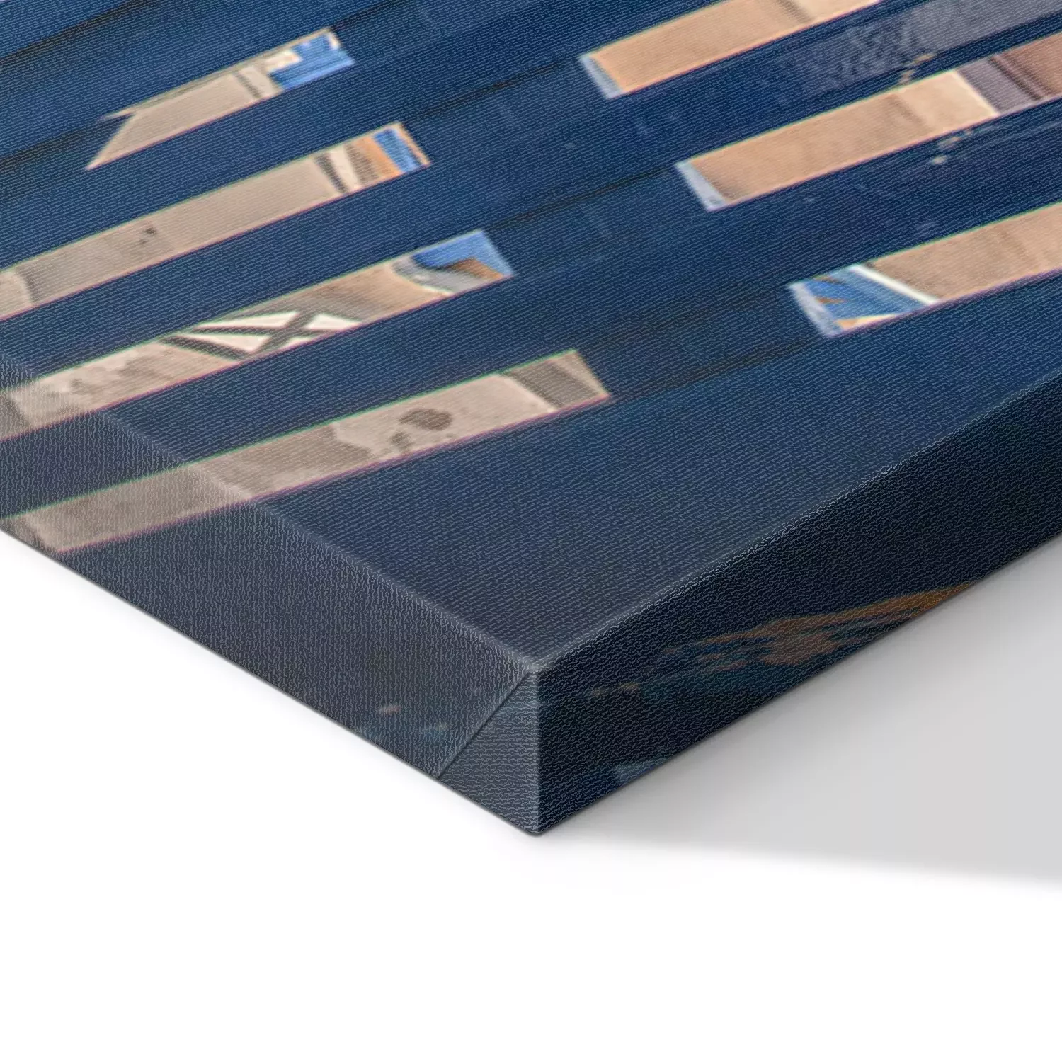 De print wordt aangebracht op hoogwaardig canvas dat op een schildersweefgetouw (spieraam) wordt gespannen. Omdat de print de zijranden bedekt, hoeft het ontwerp niet met een extra kader te worden omlijst. Wij raden ook composities aan die uit meerdere foto's bestaan en zo een coherente compositie vormen.