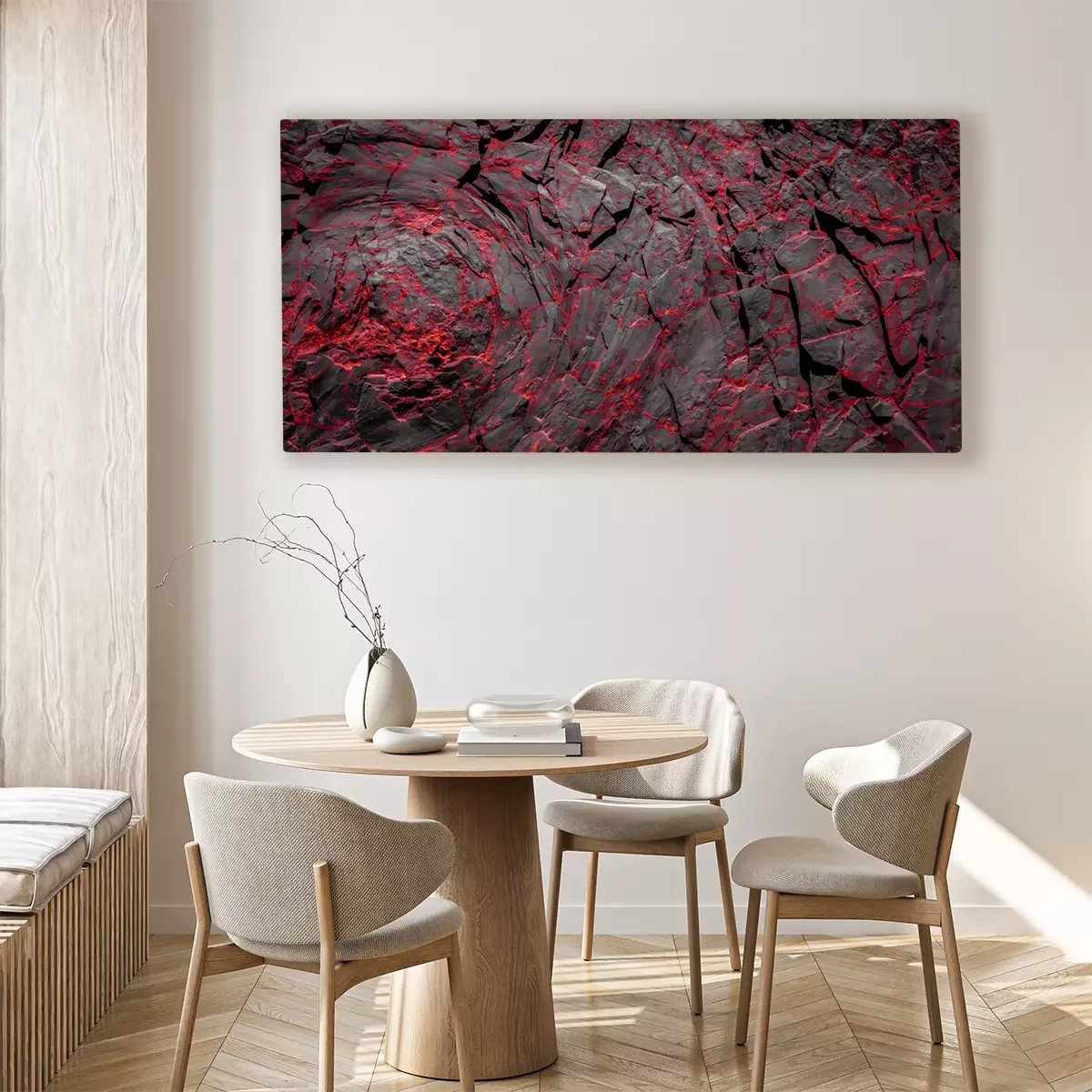 De print wordt aangebracht op hoogwaardig canvas dat op een schildersweefgetouw (spieraam) wordt gespannen. Omdat de print de zijranden bedekt, hoeft het ontwerp niet met een extra kader te worden omlijst. Wij raden ook composities aan die uit meerdere foto's bestaan en zo een coherente compositie vormen.