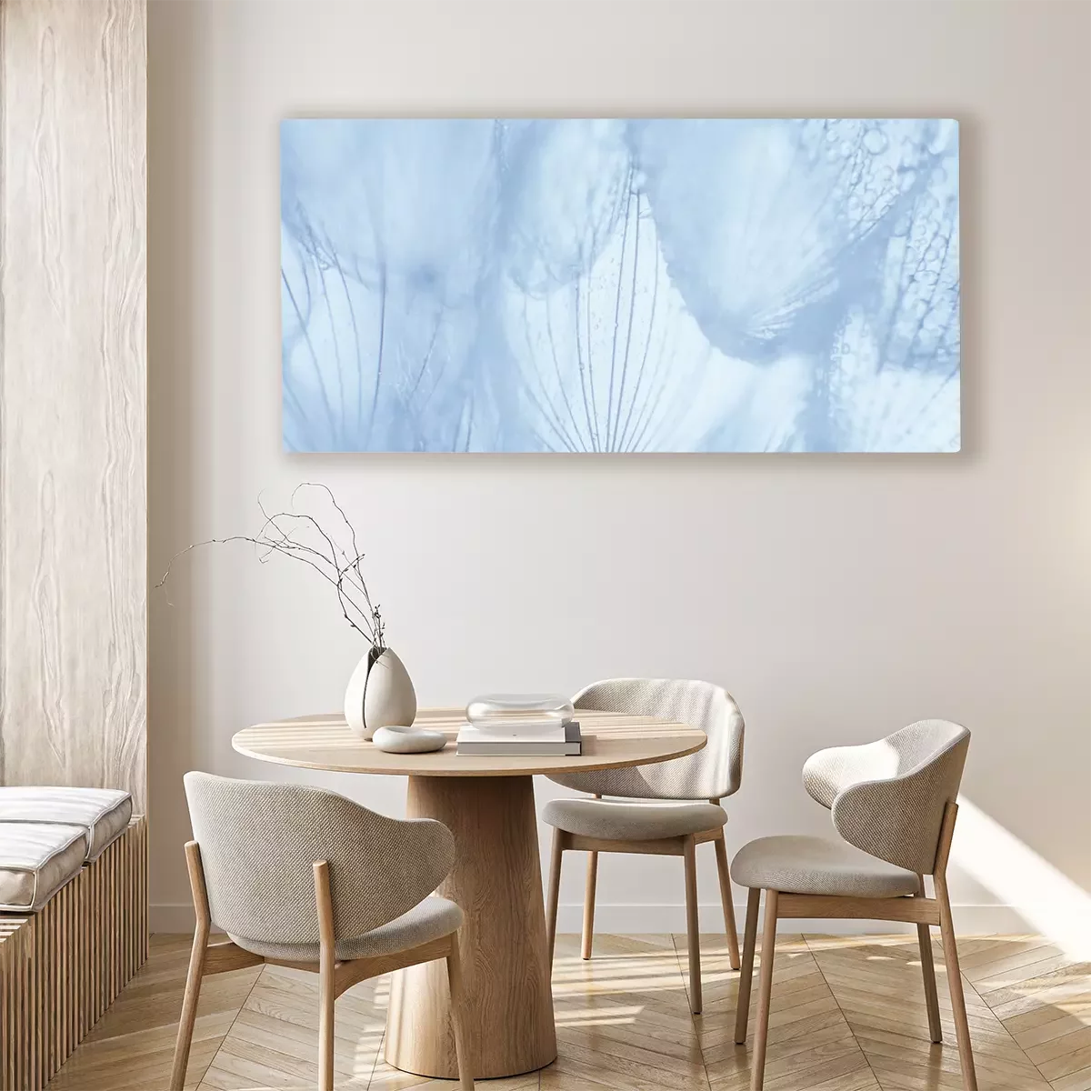 Canvas: Grijze paardebloemen met waterdruppels