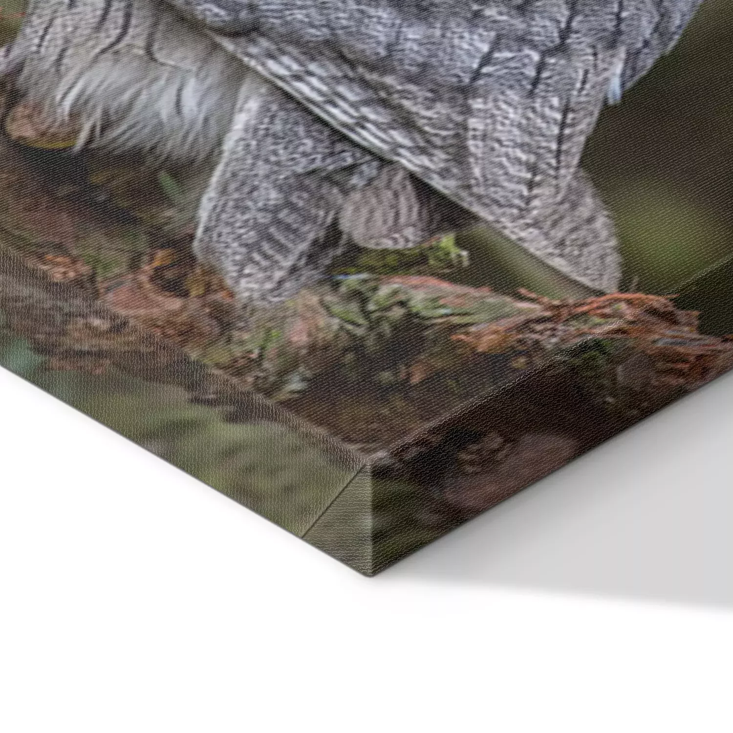 De print wordt aangebracht op hoogwaardig canvas dat op een schildersweefgetouw (spieraam) wordt gespannen. Omdat de print de zijranden bedekt, hoeft het ontwerp niet met een extra kader te worden omlijst. Wij raden ook composities aan die uit meerdere foto's bestaan en zo een coherente compositie vormen.