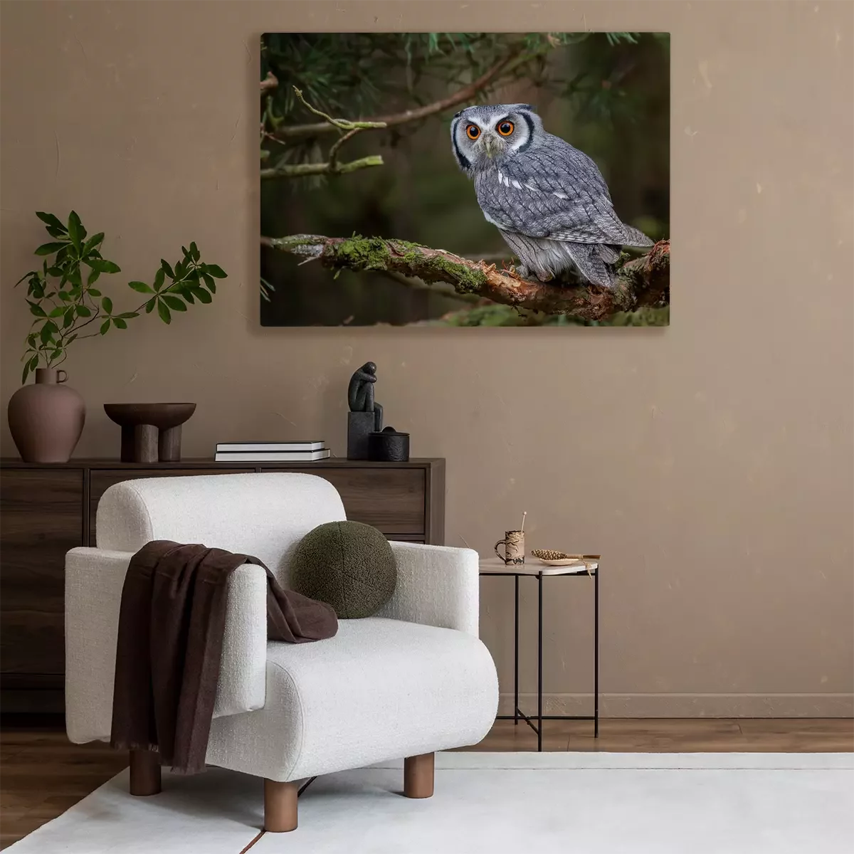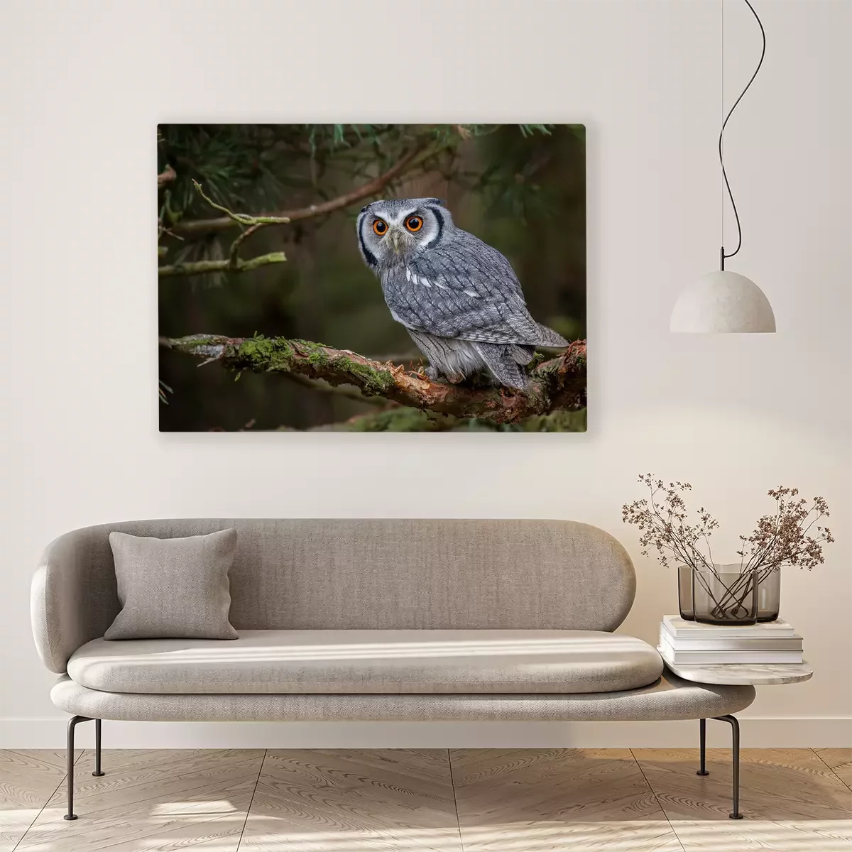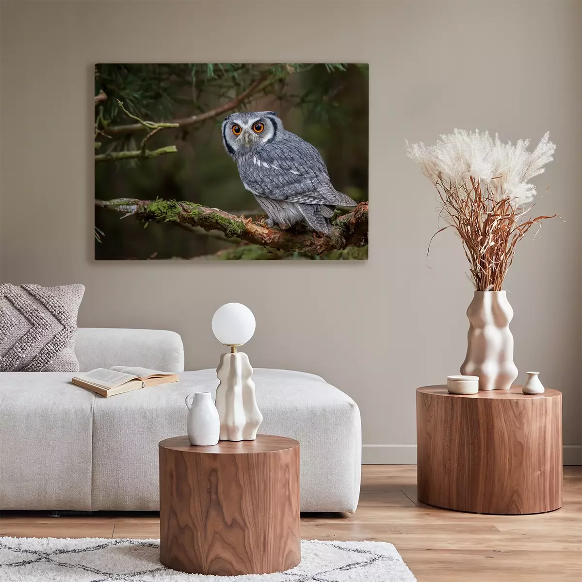 Canvas: Grijze uil in het bos