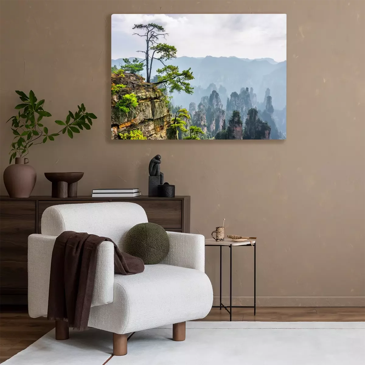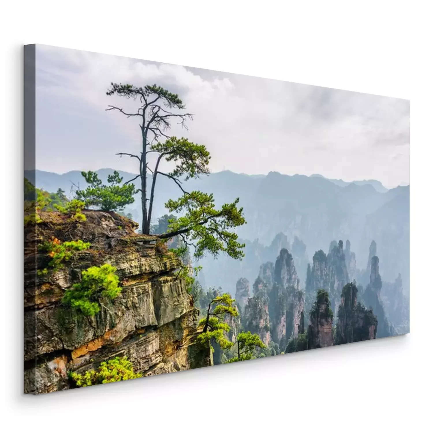 Canvas: Groene boom die op de top van de rots groeit