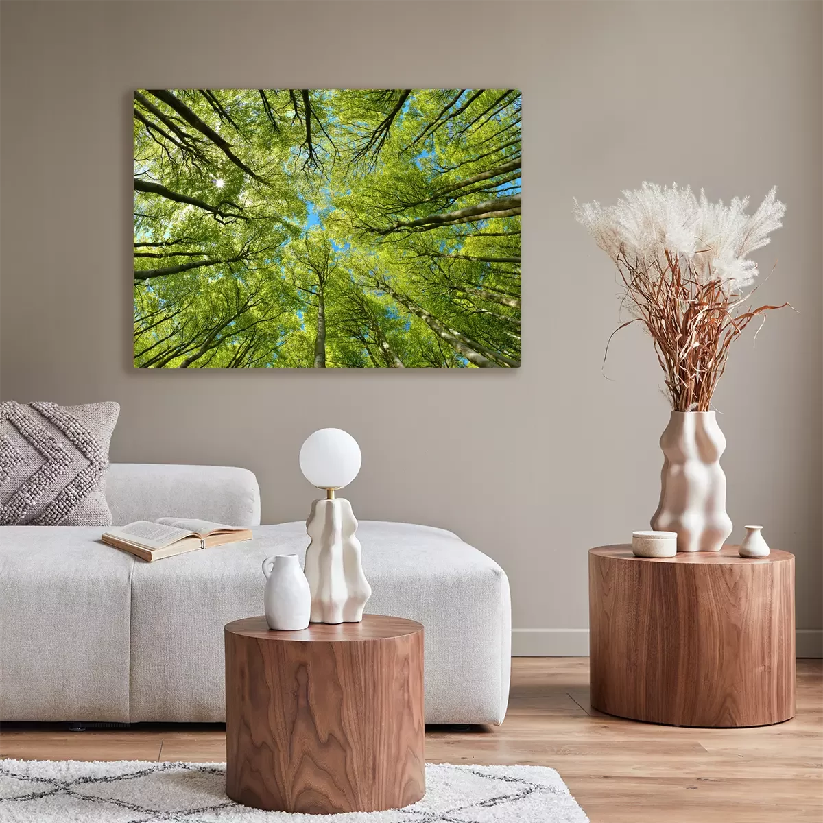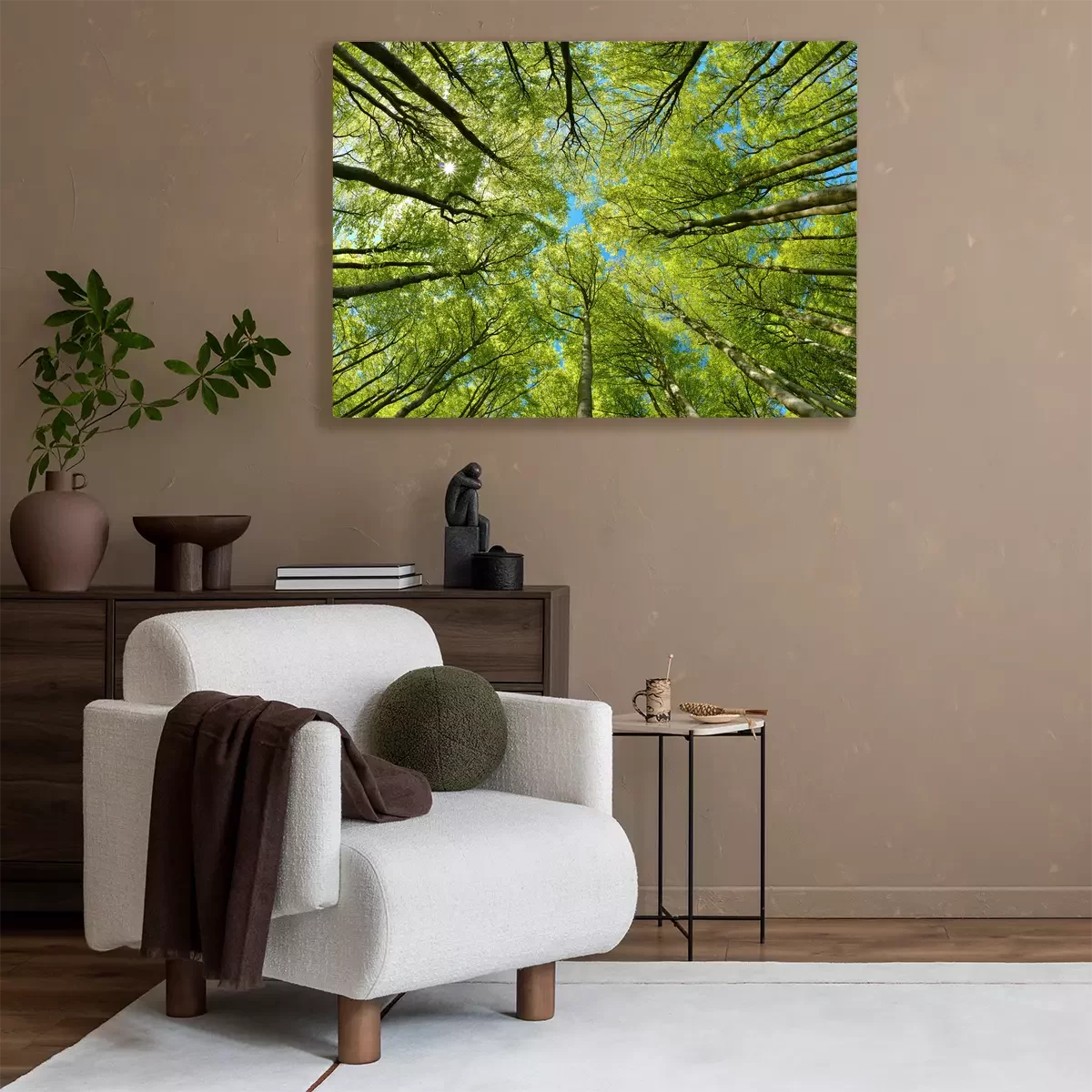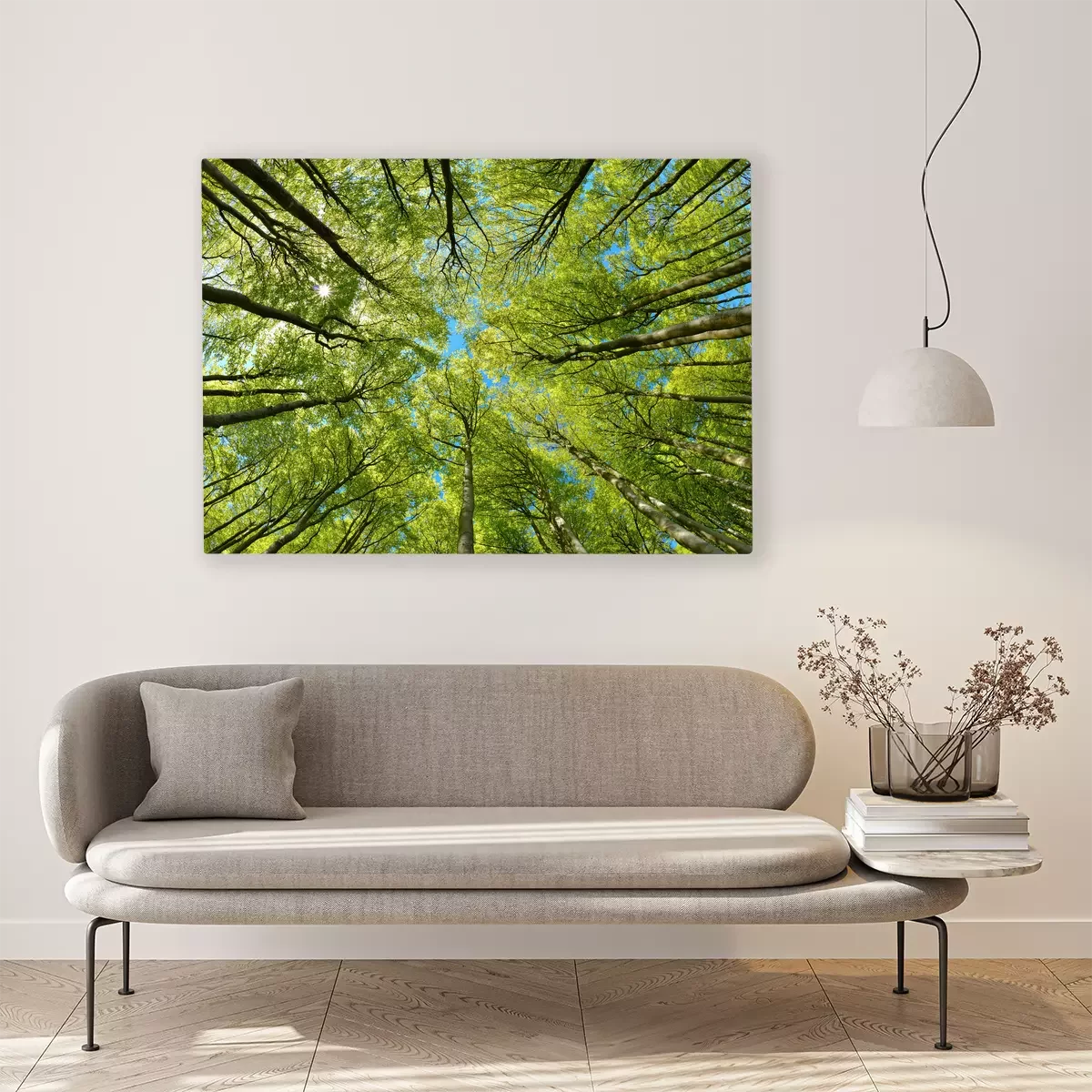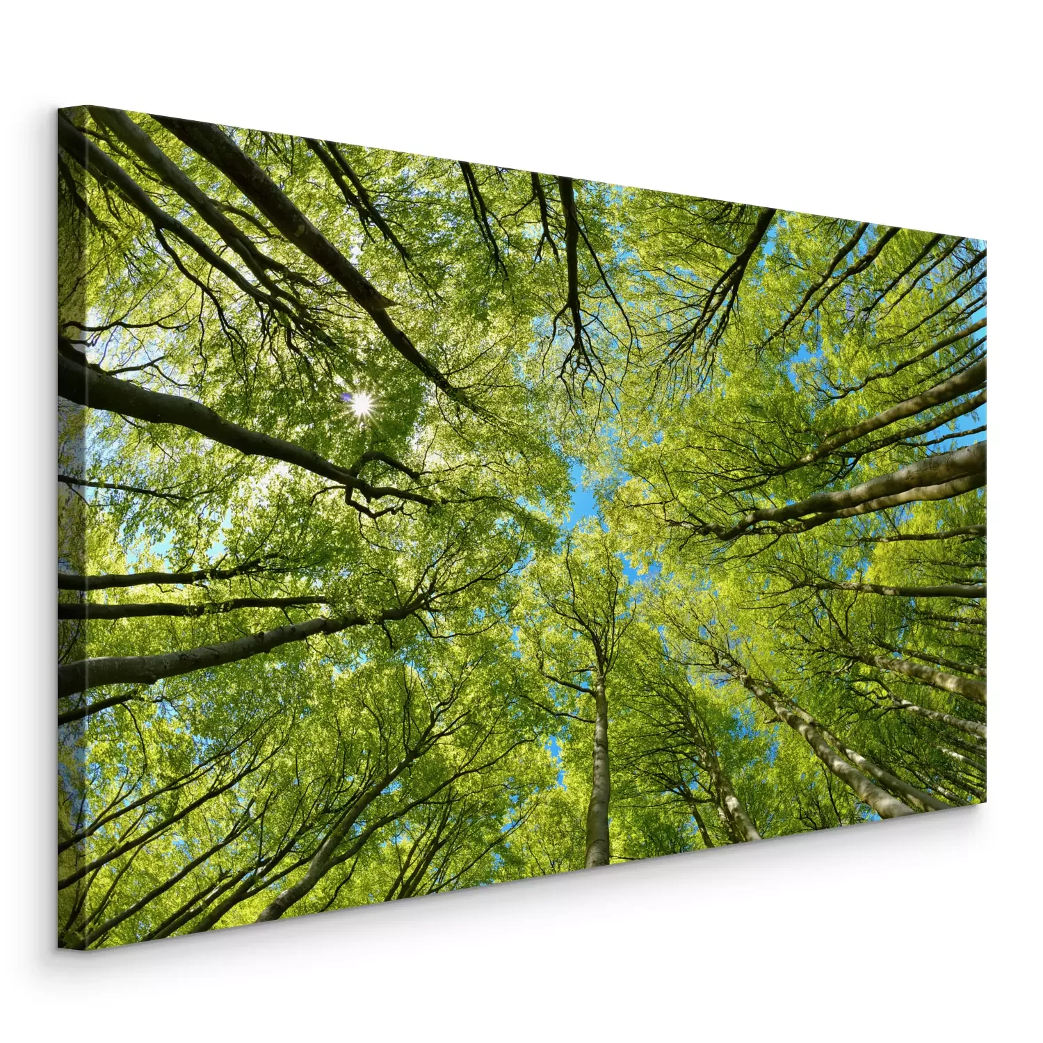 Groene boomtoppen tegen de blauwe lucht