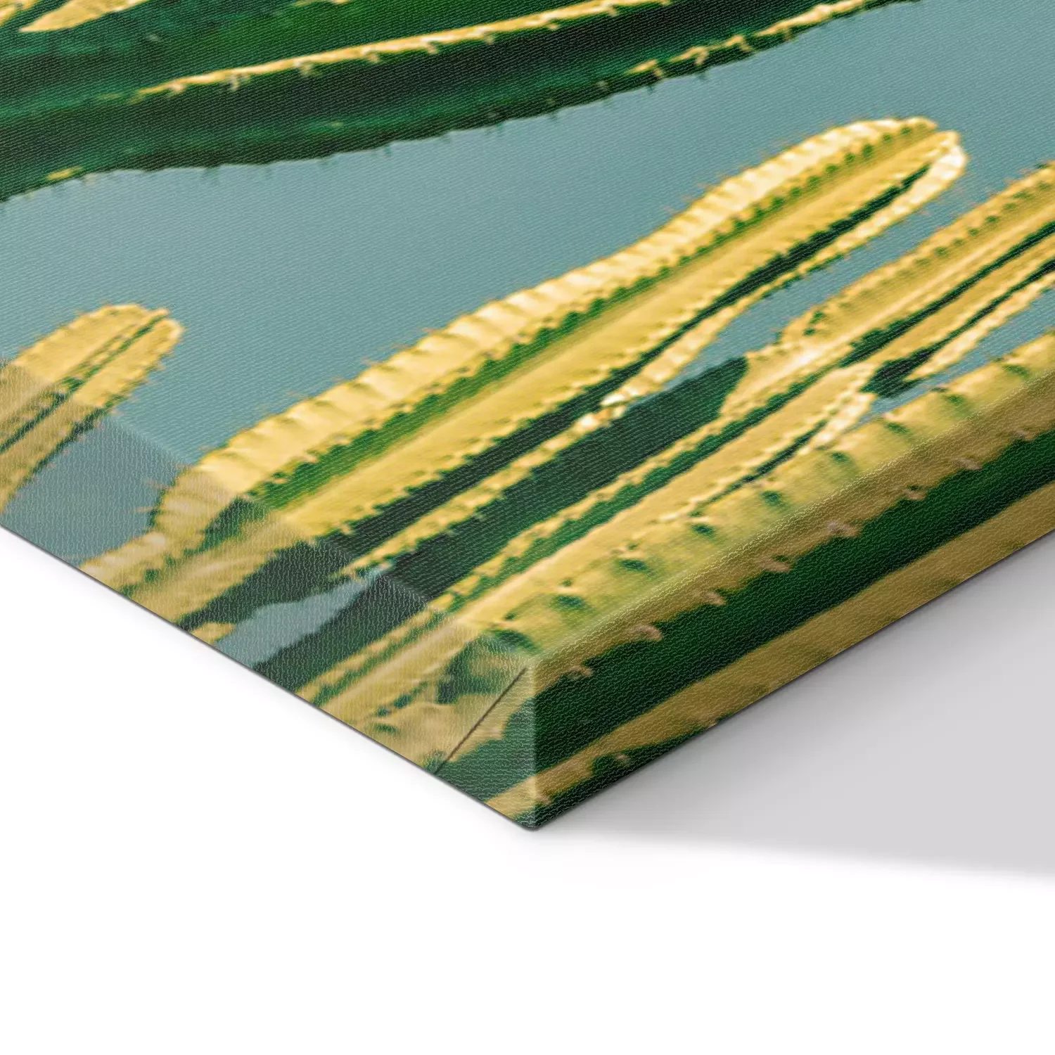 De print wordt aangebracht op hoogwaardig canvas dat op een schildersweefgetouw (spieraam) wordt gespannen. Omdat de print de zijranden bedekt, hoeft het ontwerp niet met een extra kader te worden omlijst. Wij raden ook composities aan die uit meerdere foto's bestaan en zo een coherente compositie vormen.