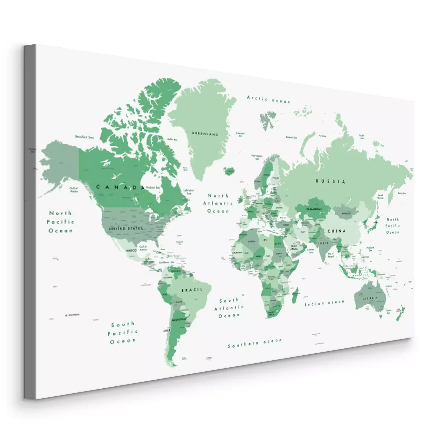 Canvas: Groene kaart van de wereld op een witte achtergrond