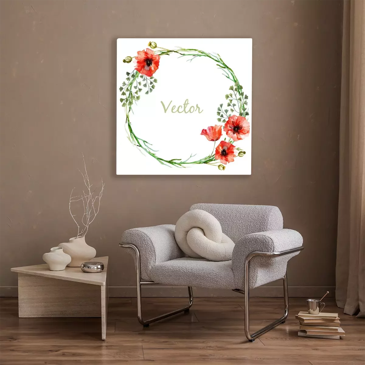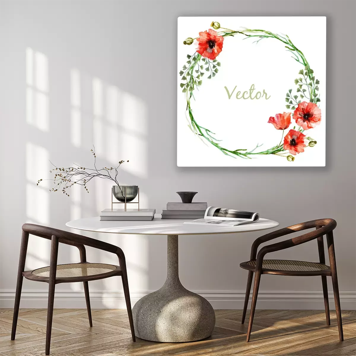 Canvas Groene krans met klaprozen