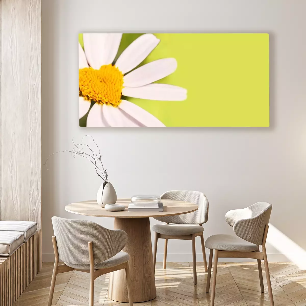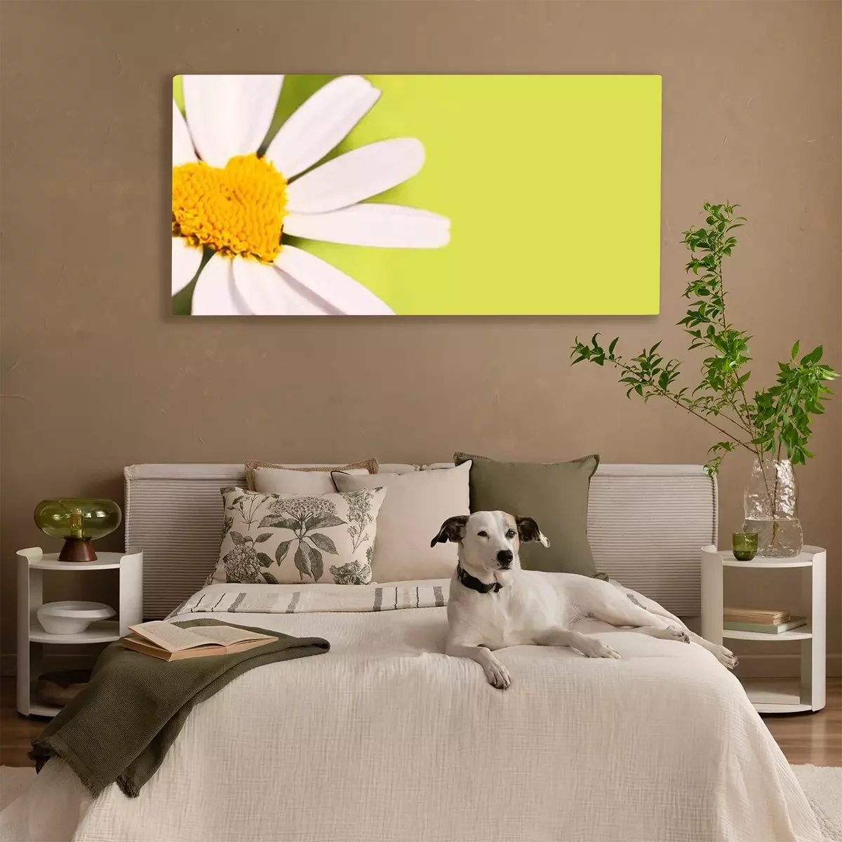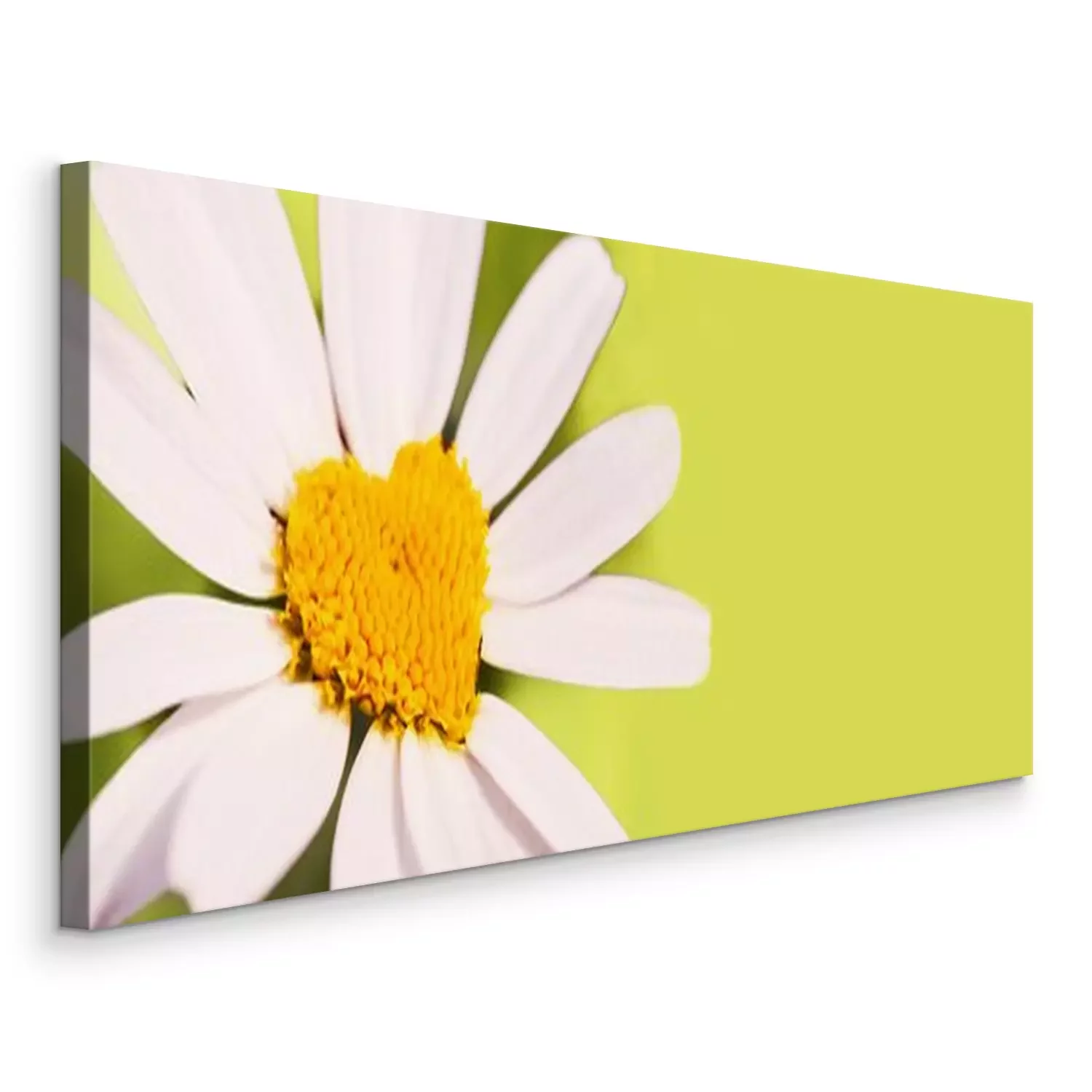 Canvas: Groene panoramische banner met een madeliefje in de vorm van een hart, liefdeconcept