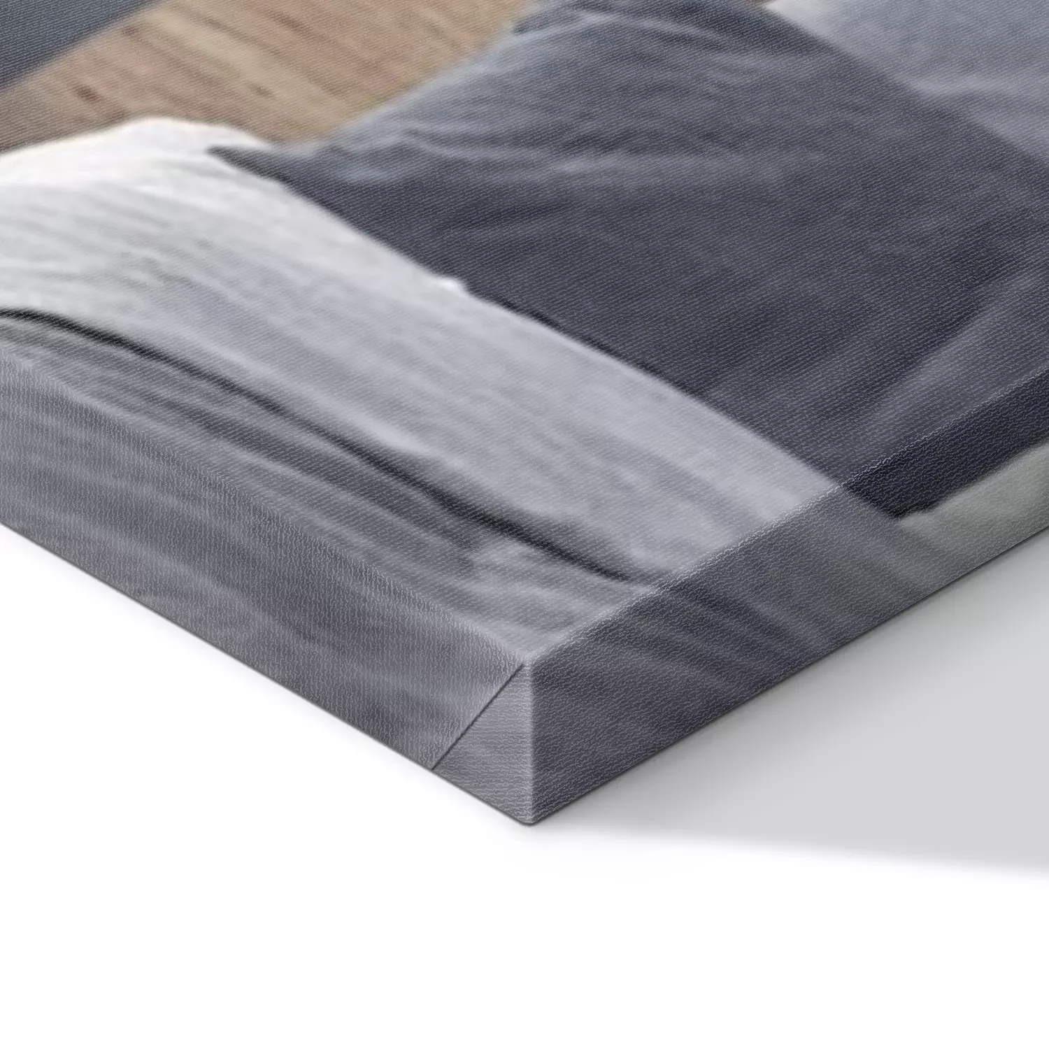 De print wordt aangebracht op hoogwaardig canvas dat op een schildersweefgetouw (spieraam) wordt gespannen. Omdat de print de zijranden bedekt, hoeft het ontwerp niet met een extra kader te worden omlijst. Wij raden ook composities aan die uit meerdere foto's bestaan en zo een coherente compositie vormen.