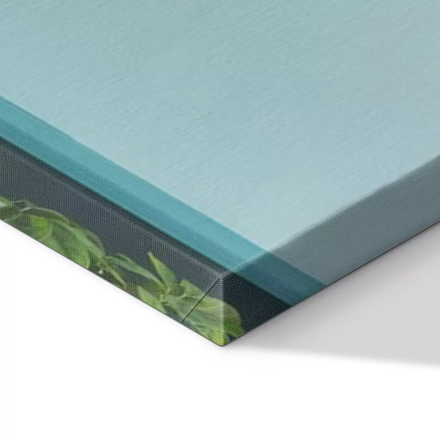De print wordt aangebracht op hoogwaardig canvas dat op een schildersweefgetouw (spieraam) wordt gespannen. Omdat de print de zijranden bedekt, hoeft het ontwerp niet met een extra kader te worden omlijst. Wij raden ook composities aan die uit meerdere foto's bestaan en zo een coherente compositie vormen.