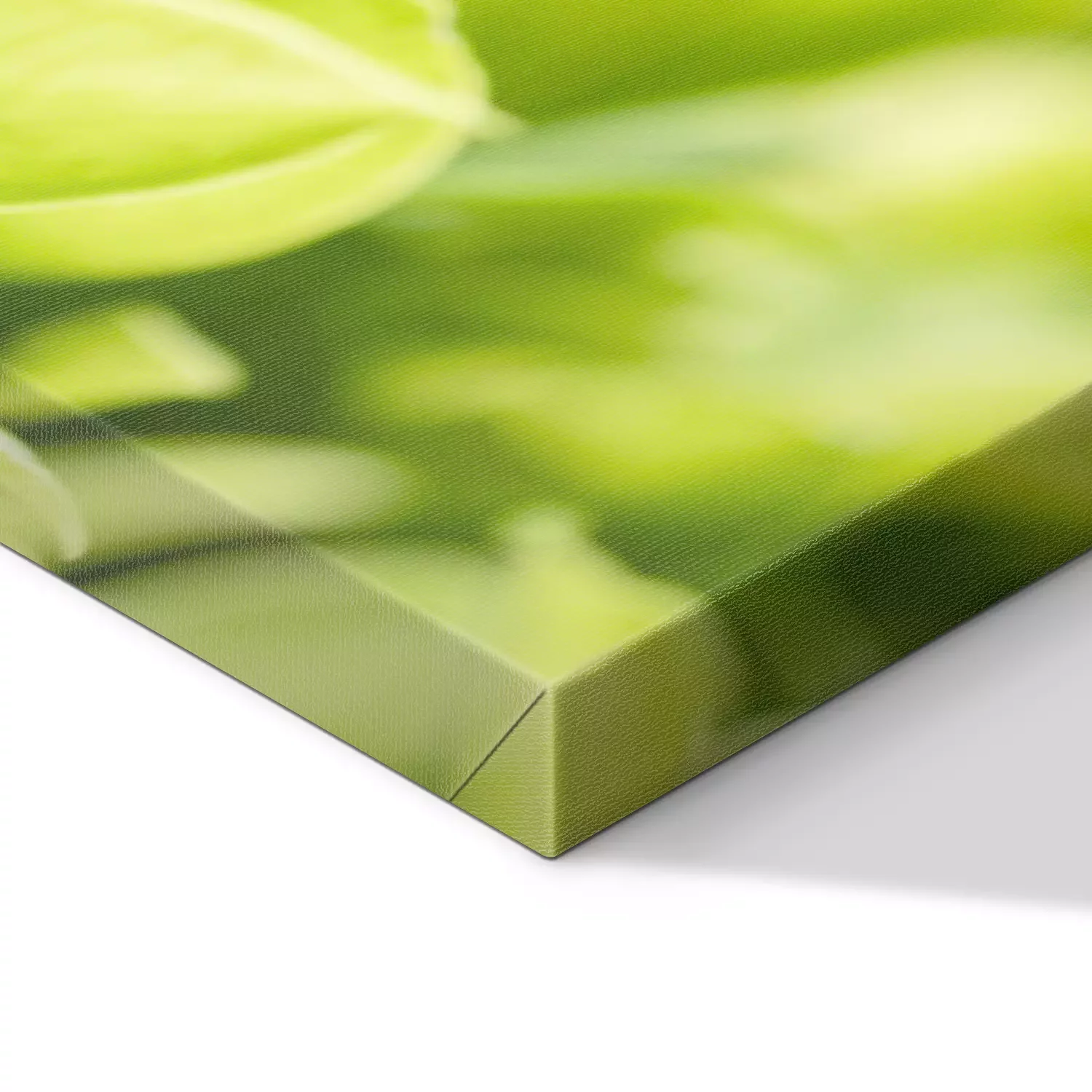De print wordt aangebracht op hoogwaardig canvas dat op een schildersweefgetouw (spieraam) wordt gespannen. Omdat de print de zijranden bedekt, hoeft het ontwerp niet met een extra kader te worden omlijst. Wij raden ook composities aan die uit meerdere foto's bestaan en zo een coherente compositie vormen.