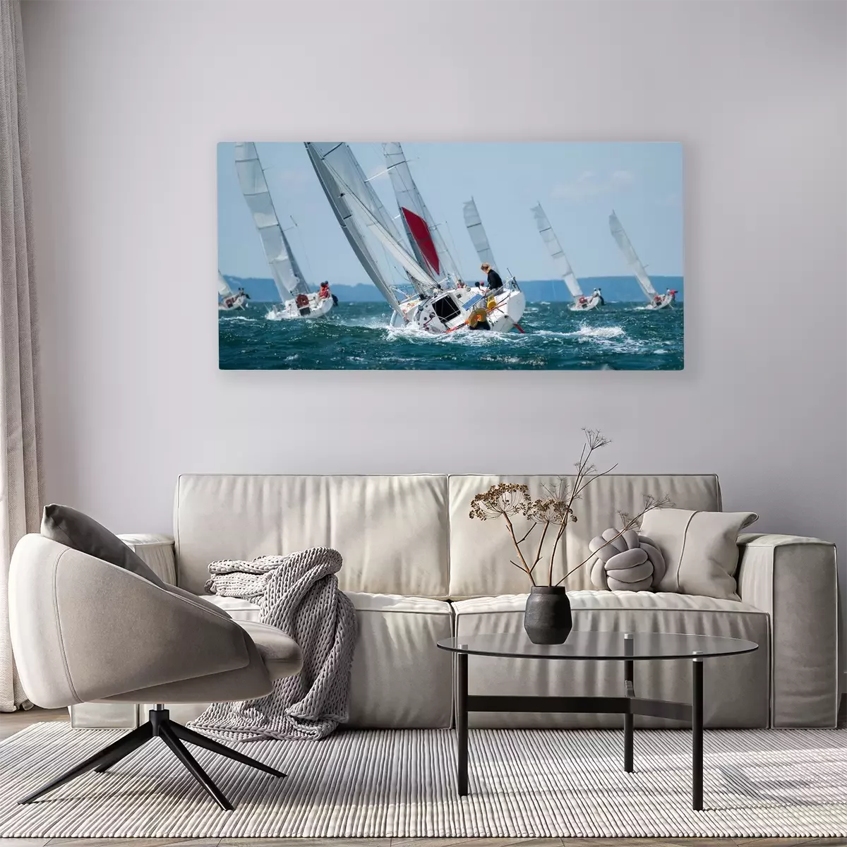 De print wordt aangebracht op hoogwaardig canvas dat op een schildersweefgetouw (spieraam) wordt gespannen. Omdat de print de zijranden bedekt, hoeft het ontwerp niet met een extra kader te worden omlijst. Wij raden ook composities aan die uit meerdere foto's bestaan en zo een coherente compositie vormen.