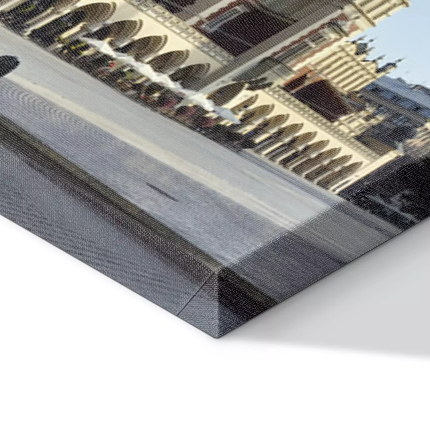 De print wordt aangebracht op hoogwaardig canvas dat op een schildersweefgetouw (spieraam) wordt gespannen. Omdat de print de zijranden bedekt, hoeft het ontwerp niet met een extra kader te worden omlijst. Wij raden ook composities aan die uit meerdere foto's bestaan en zo een coherente compositie vormen.