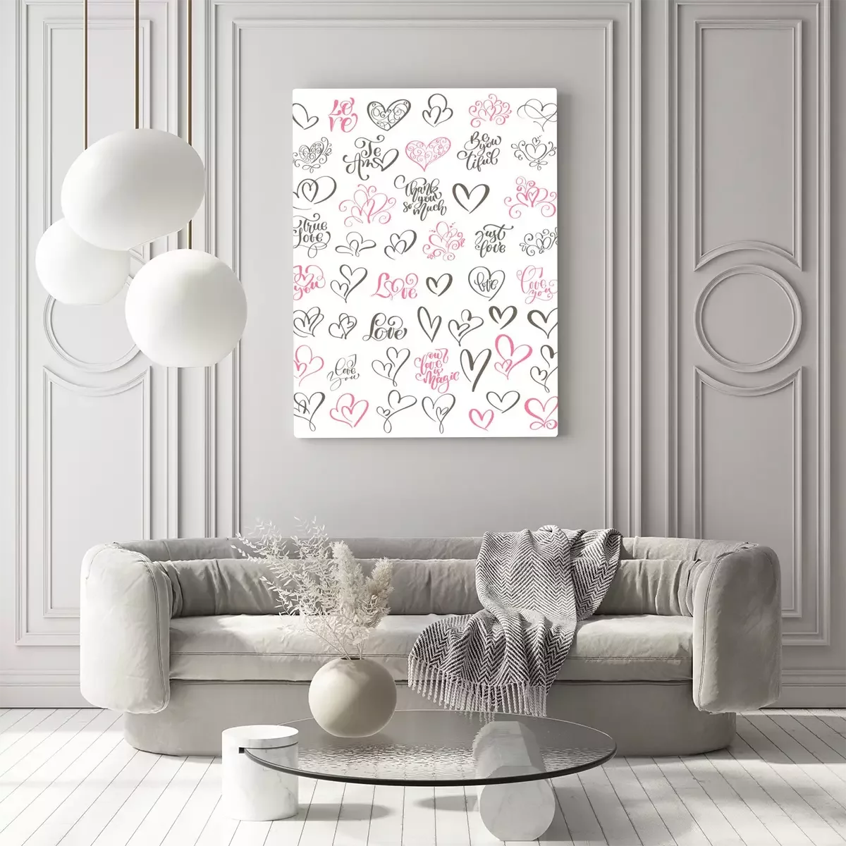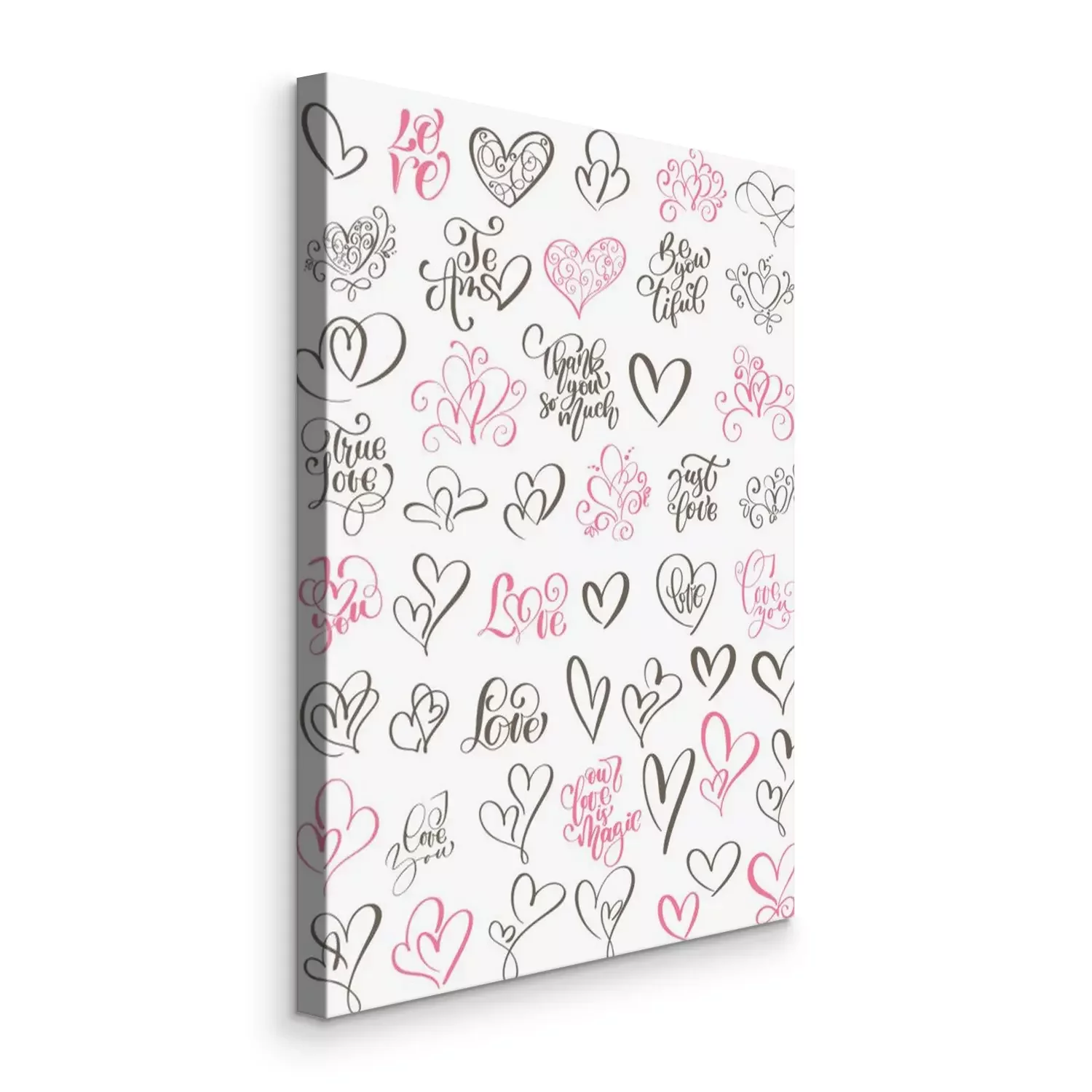 Canvas: Grote set handgeschreven letters over liefde tot Valentijnsdag en hart ontwerp poster, wenskaart, fotoalbum, banner, bloeien kalligrafie vector illustratie collectie