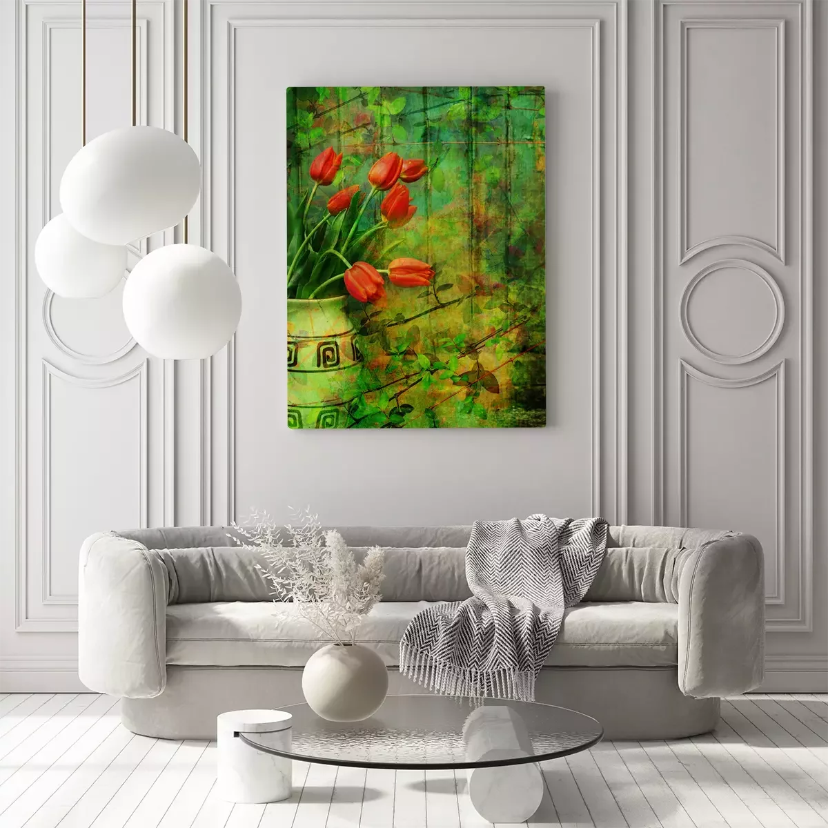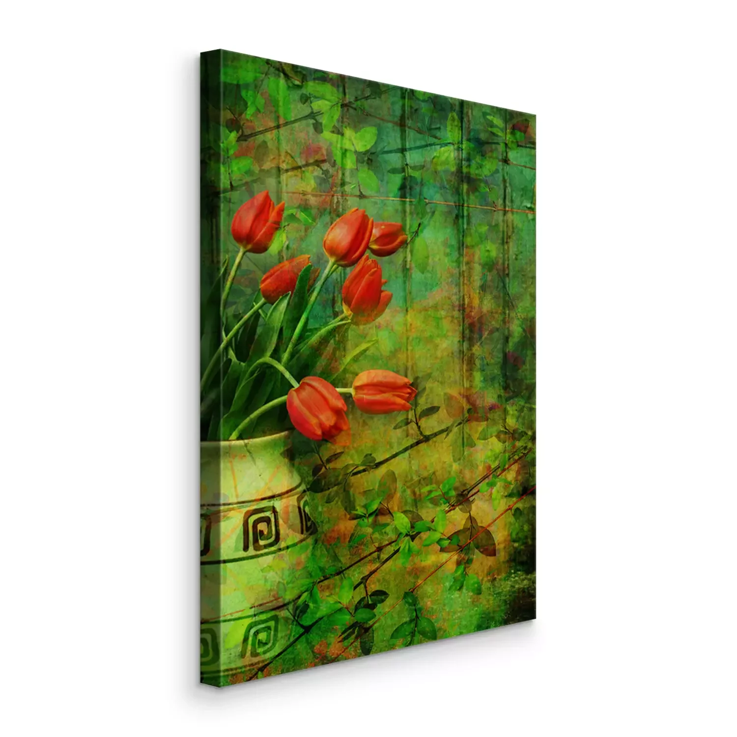 Canvas Grunge, achtergrond van de lente met rode tulpen