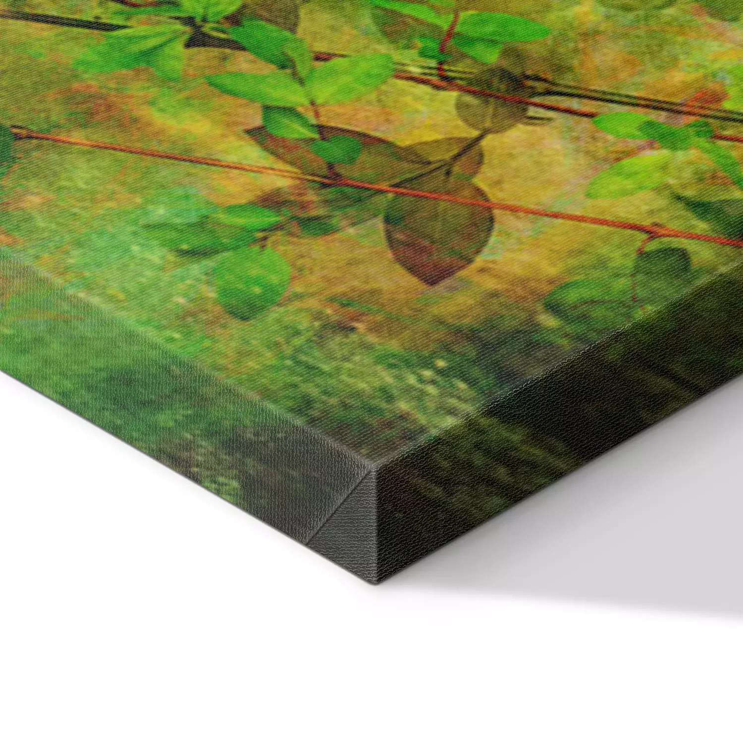 De print wordt aangebracht op hoogwaardig canvas dat op een schildersweefgetouw (spieraam) wordt gespannen. Omdat de print de zijranden bedekt, hoeft het ontwerp niet met een extra kader te worden omlijst. Wij raden ook composities aan die uit meerdere foto's bestaan en zo een coherente compositie vormen.
