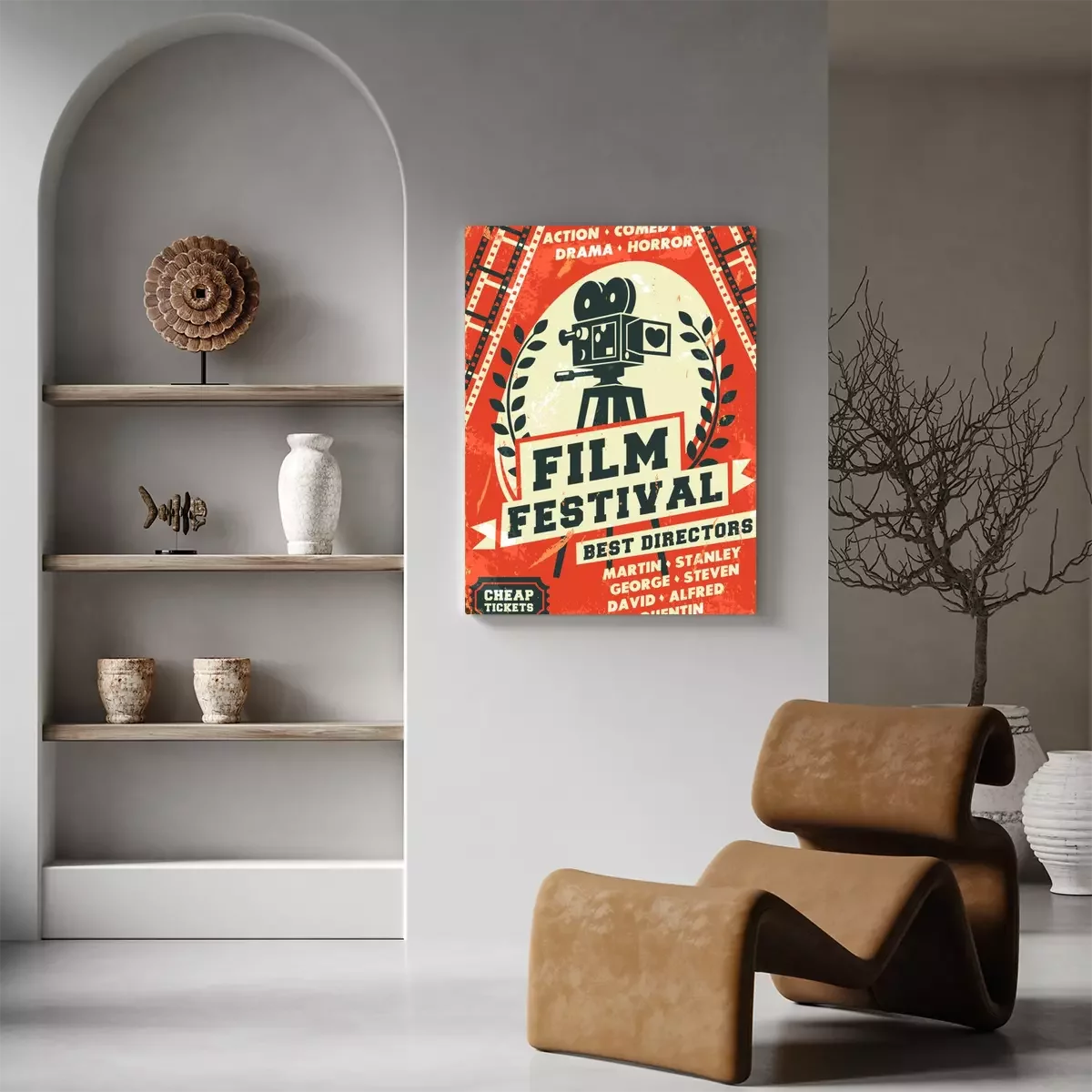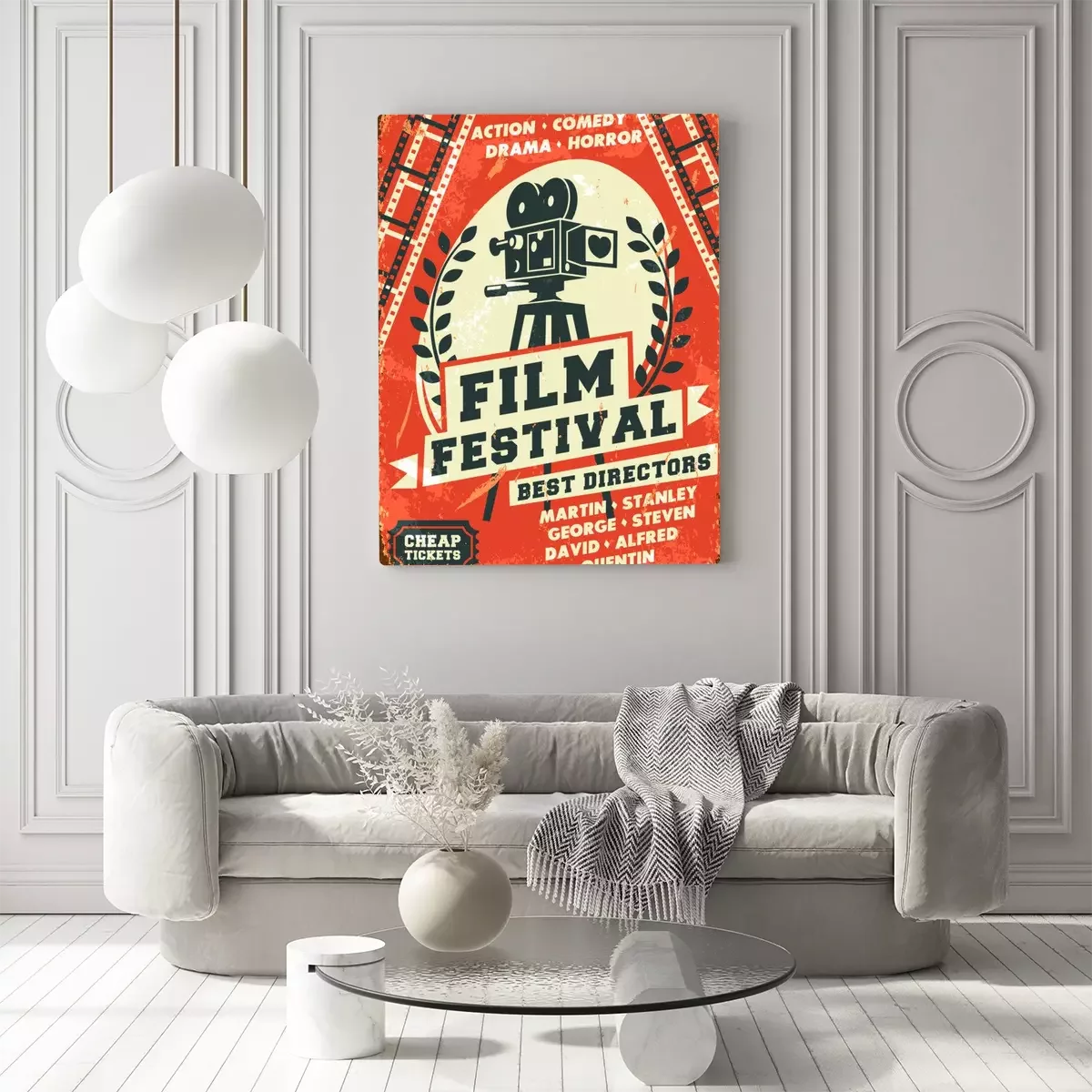 Canvas Grunge retro filmfestival poster. Vector illustratie.