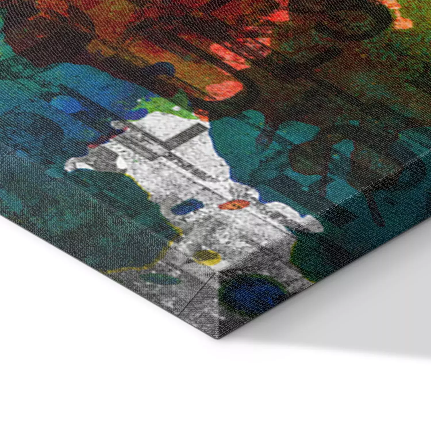 De print wordt aangebracht op hoogwaardig canvas dat op een schildersweefgetouw (spieraam) wordt gespannen. Omdat de print de zijranden bedekt, hoeft het ontwerp niet met een extra kader te worden omlijst. Wij raden ook composities aan die uit meerdere foto's bestaan en zo een coherente compositie vormen.