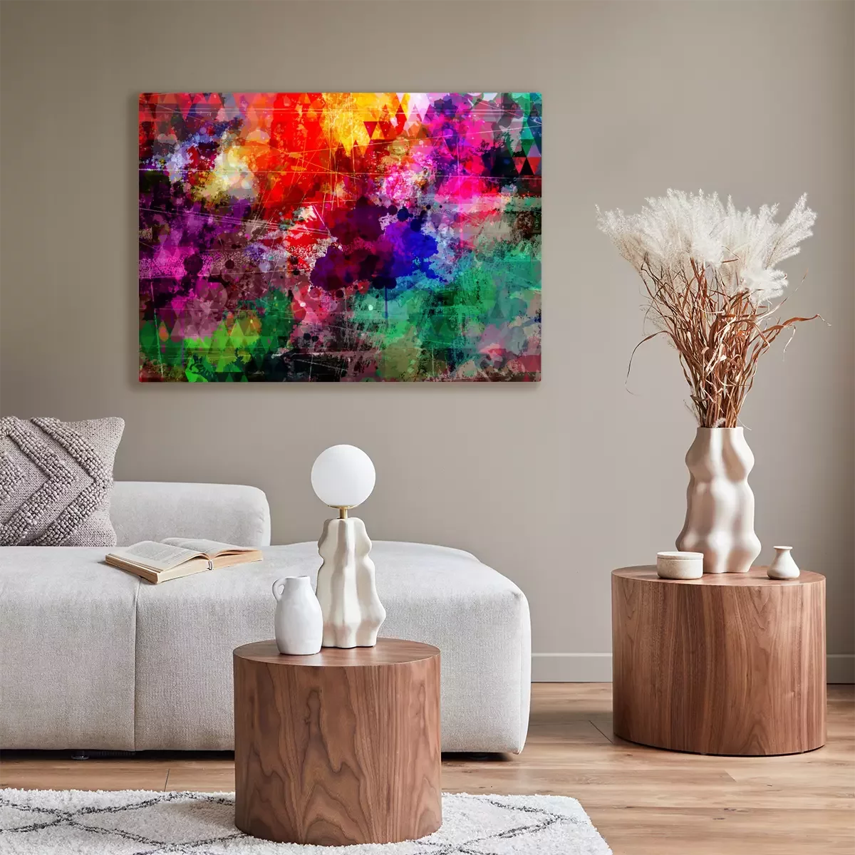 De print wordt aangebracht op hoogwaardig canvas dat op een schildersweefgetouw (spieraam) wordt gespannen. Omdat de print de zijranden bedekt, hoeft het ontwerp niet met een extra kader te worden omlijst. Wij raden ook composities aan die uit meerdere foto's bestaan en zo een coherente compositie vormen.