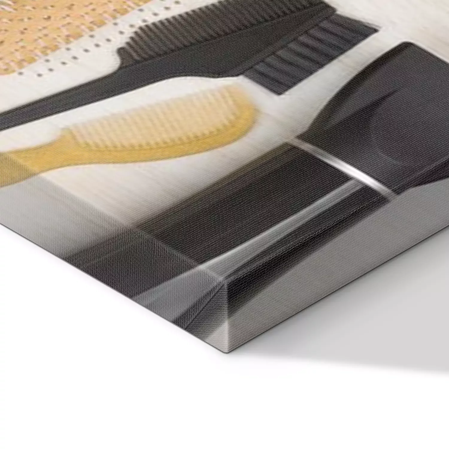 De print wordt aangebracht op hoogwaardig canvas dat op een schildersweefgetouw (spieraam) wordt gespannen. Omdat de print de zijranden bedekt, hoeft het ontwerp niet met een extra kader te worden omlijst. Wij raden ook composities aan die uit meerdere foto's bestaan en zo een coherente compositie vormen.