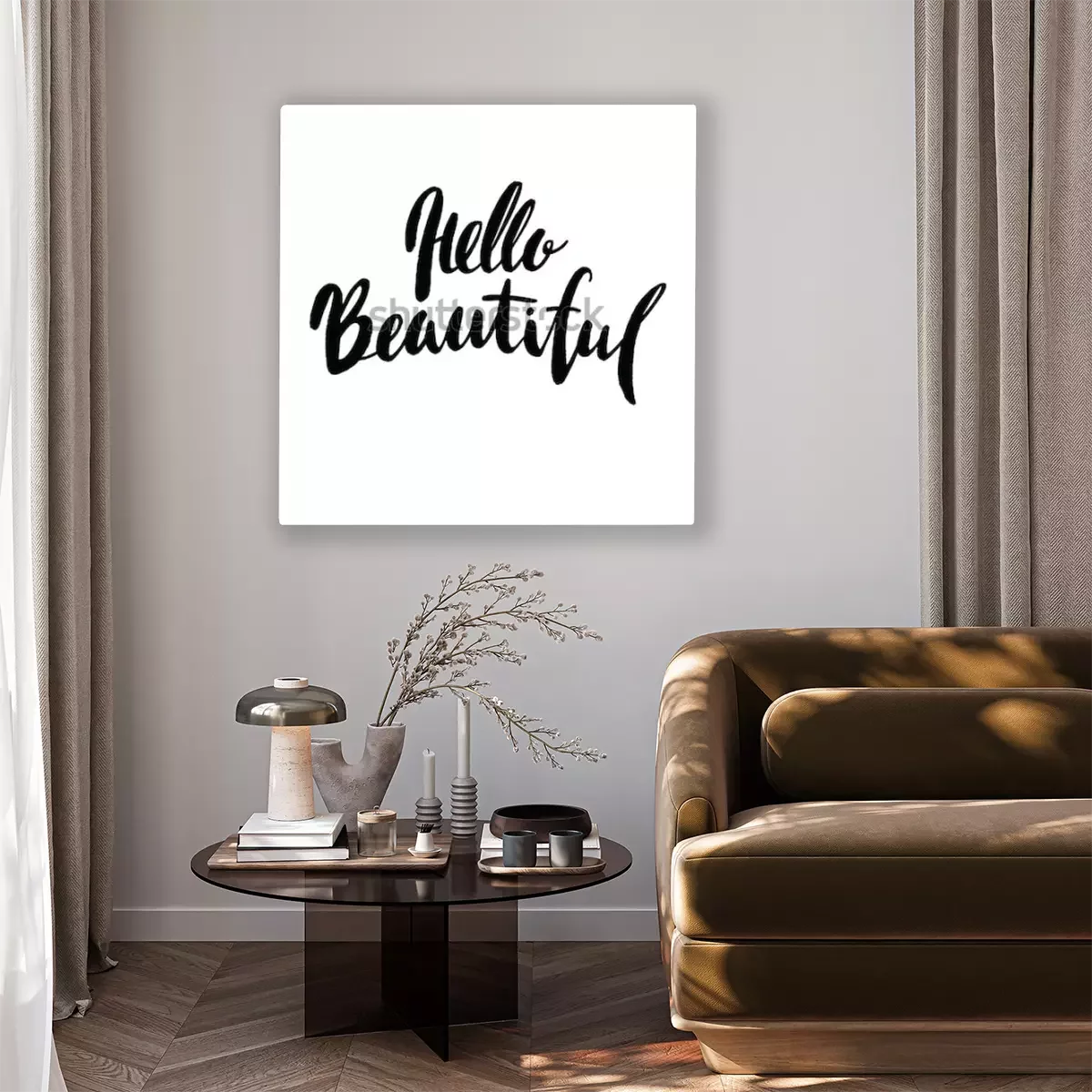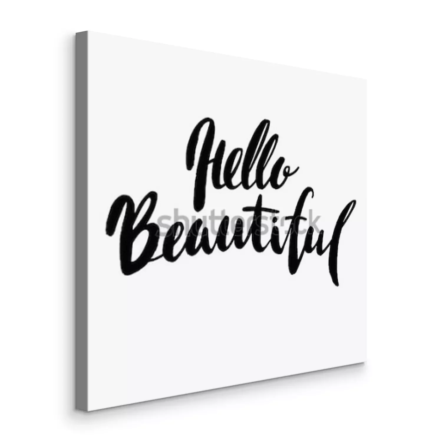 Canvas Hallo mooi - belettering met de hand getekend. Kalligrafie zin voor cadeaubonnen, baby verjaardag, scrapbooking, schoonheid blogs. Typografie kunst.