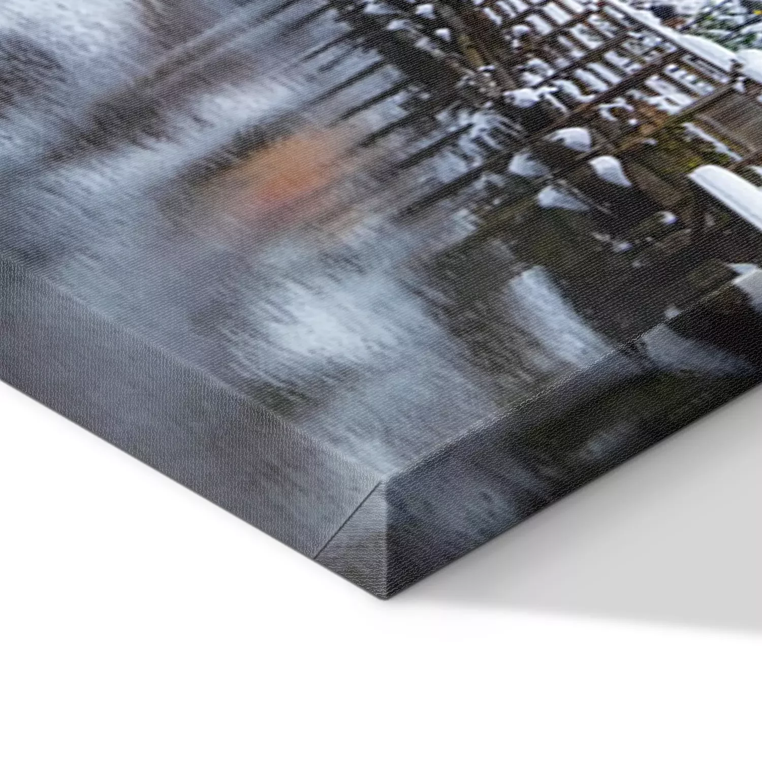 De print wordt aangebracht op hoogwaardig canvas dat op een schildersweefgetouw (spieraam) wordt gespannen. Omdat de print de zijranden bedekt, hoeft het ontwerp niet met een extra kader te worden omlijst. Wij raden ook composities aan die uit meerdere foto's bestaan en zo een coherente compositie vormen.