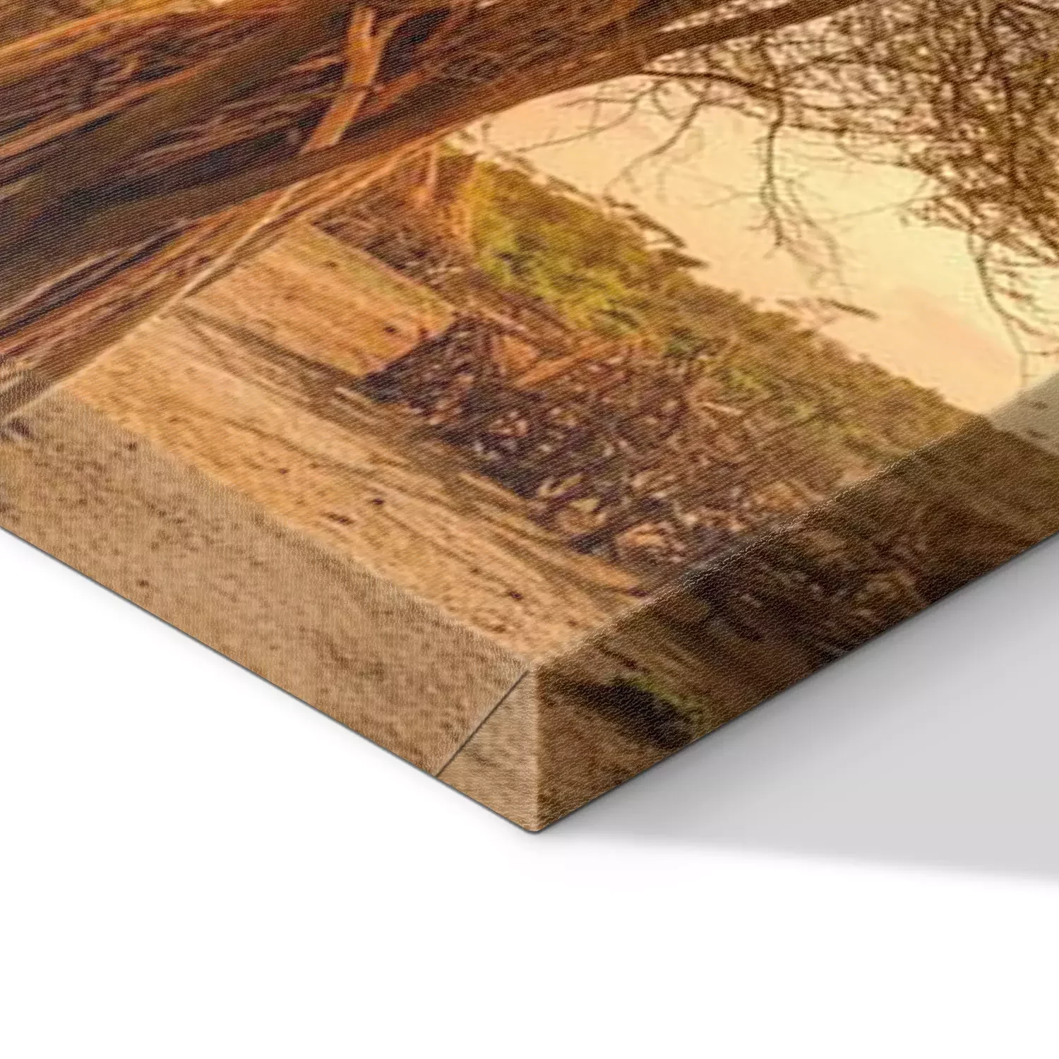 De print wordt aangebracht op hoogwaardig canvas dat op een schildersweefgetouw (spieraam) wordt gespannen. Omdat de print de zijranden bedekt, hoeft het ontwerp niet met een extra kader te worden omlijst. Wij raden ook composities aan die uit meerdere foto's bestaan en zo een coherente compositie vormen.