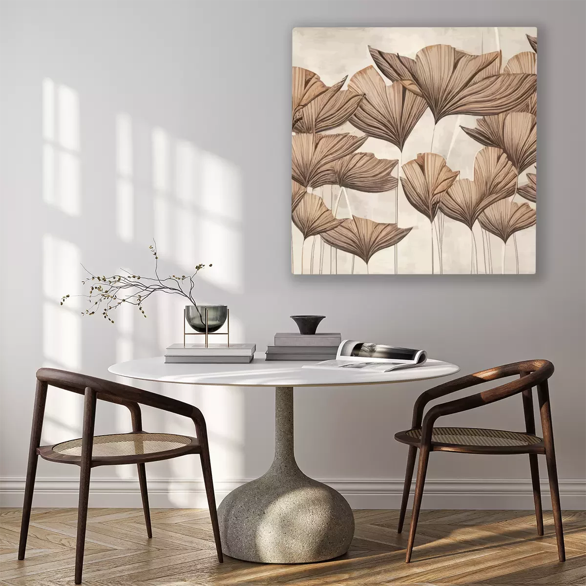 Canvas: Hand drawn floral, abstract artwork, flowers, vintage textured background. gold art painting