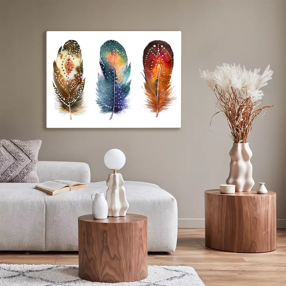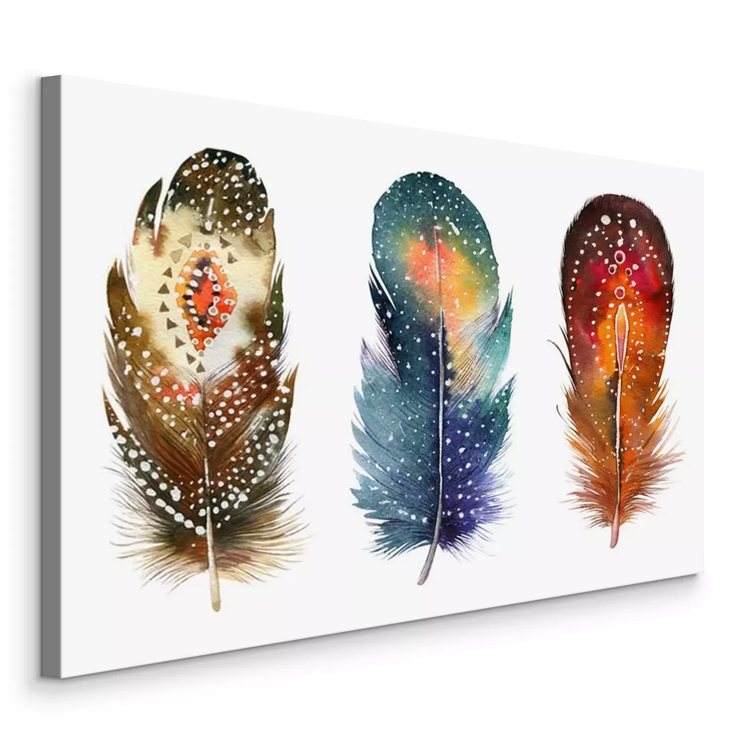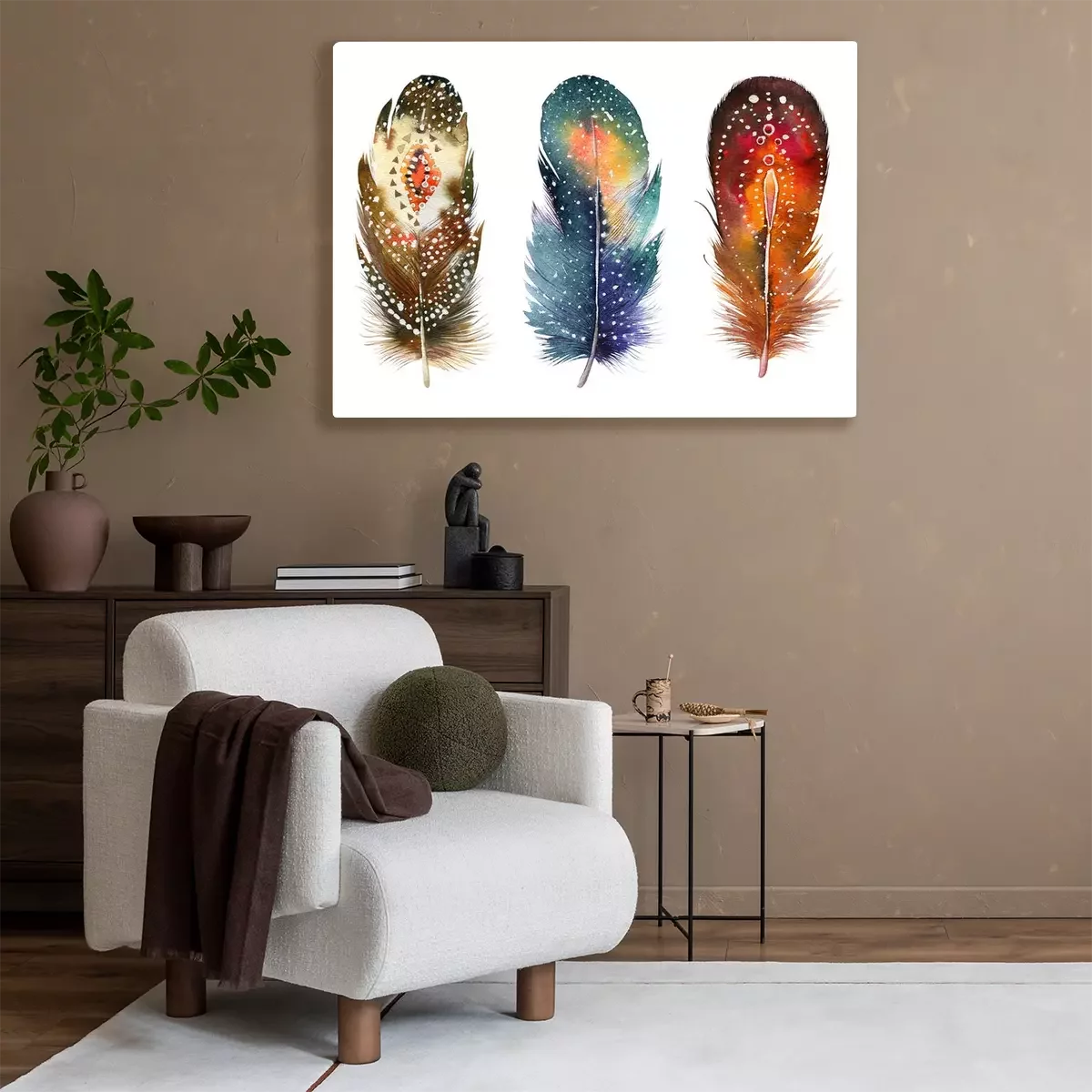 Canvas: Hand drawn watercolor feather set. Boho style. illustration iso