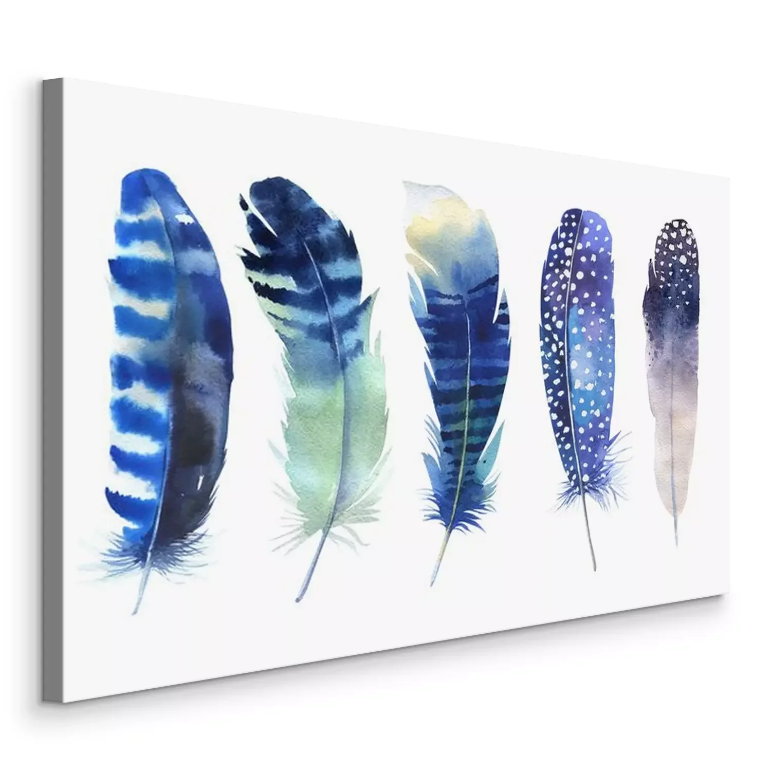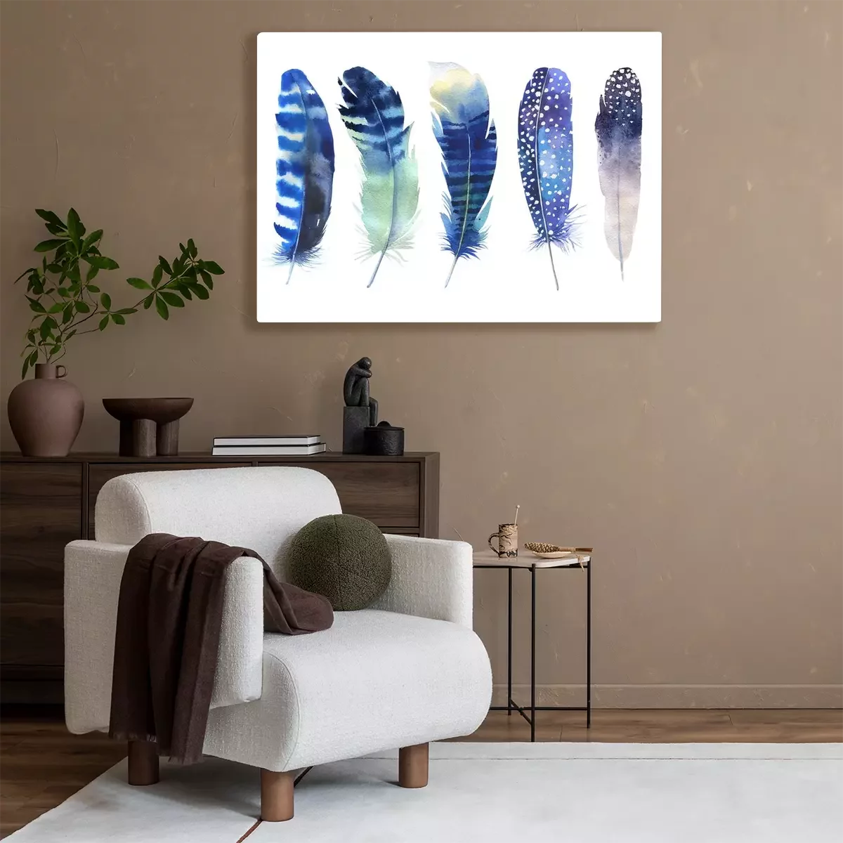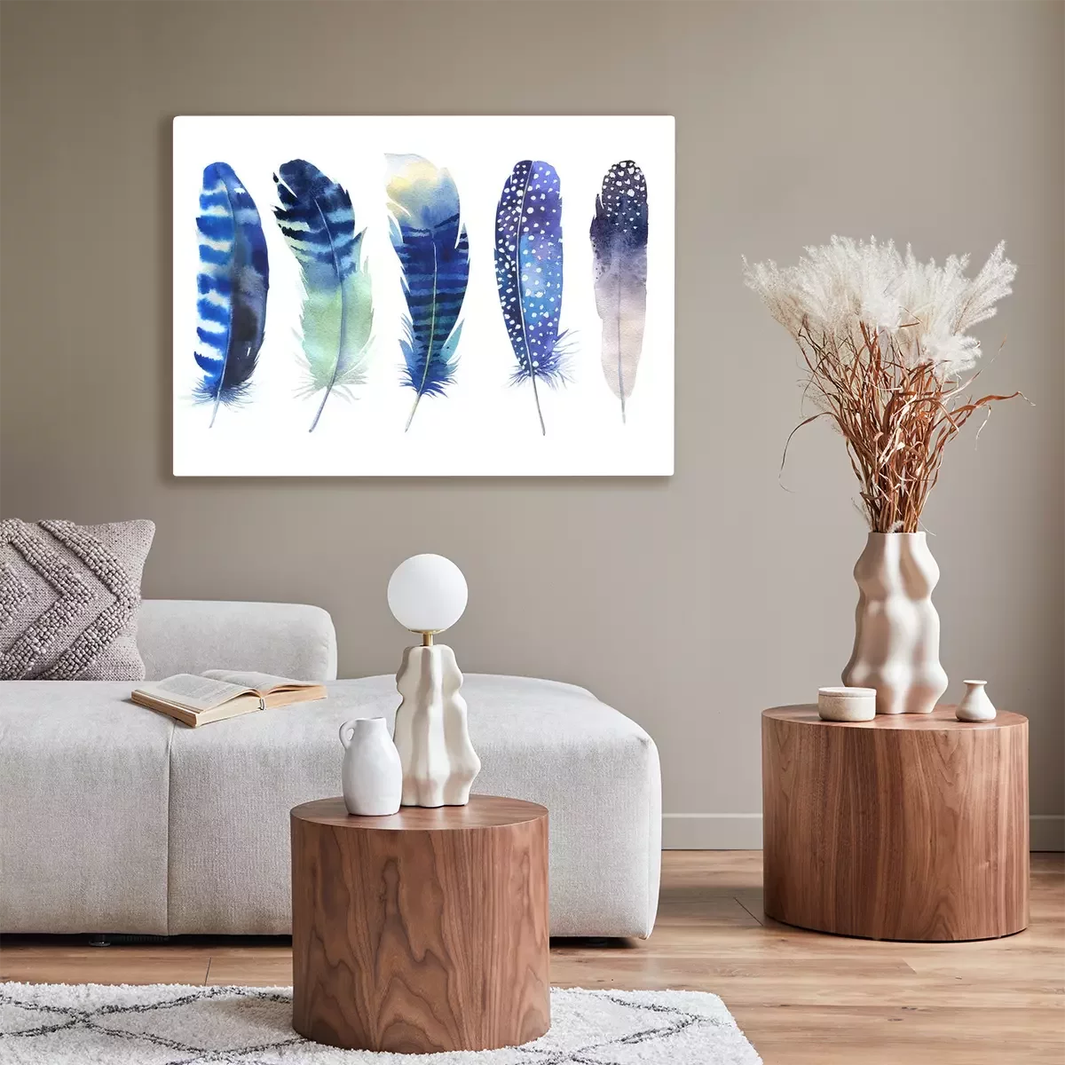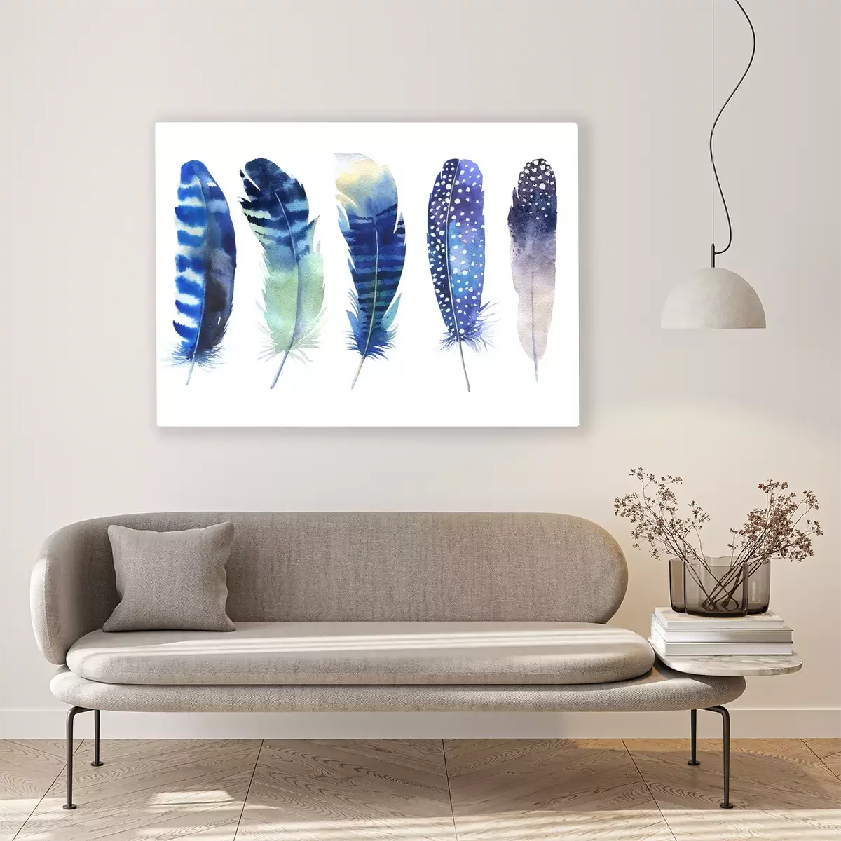 Canvas: Hand drawn watercolor feather set. Boho style. Watercolour illustration