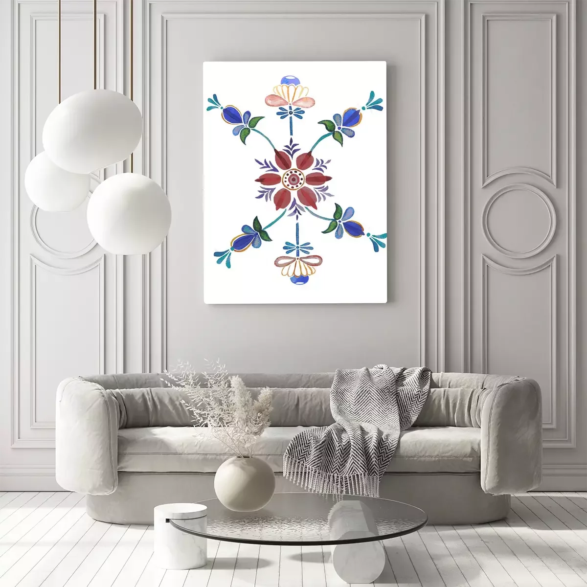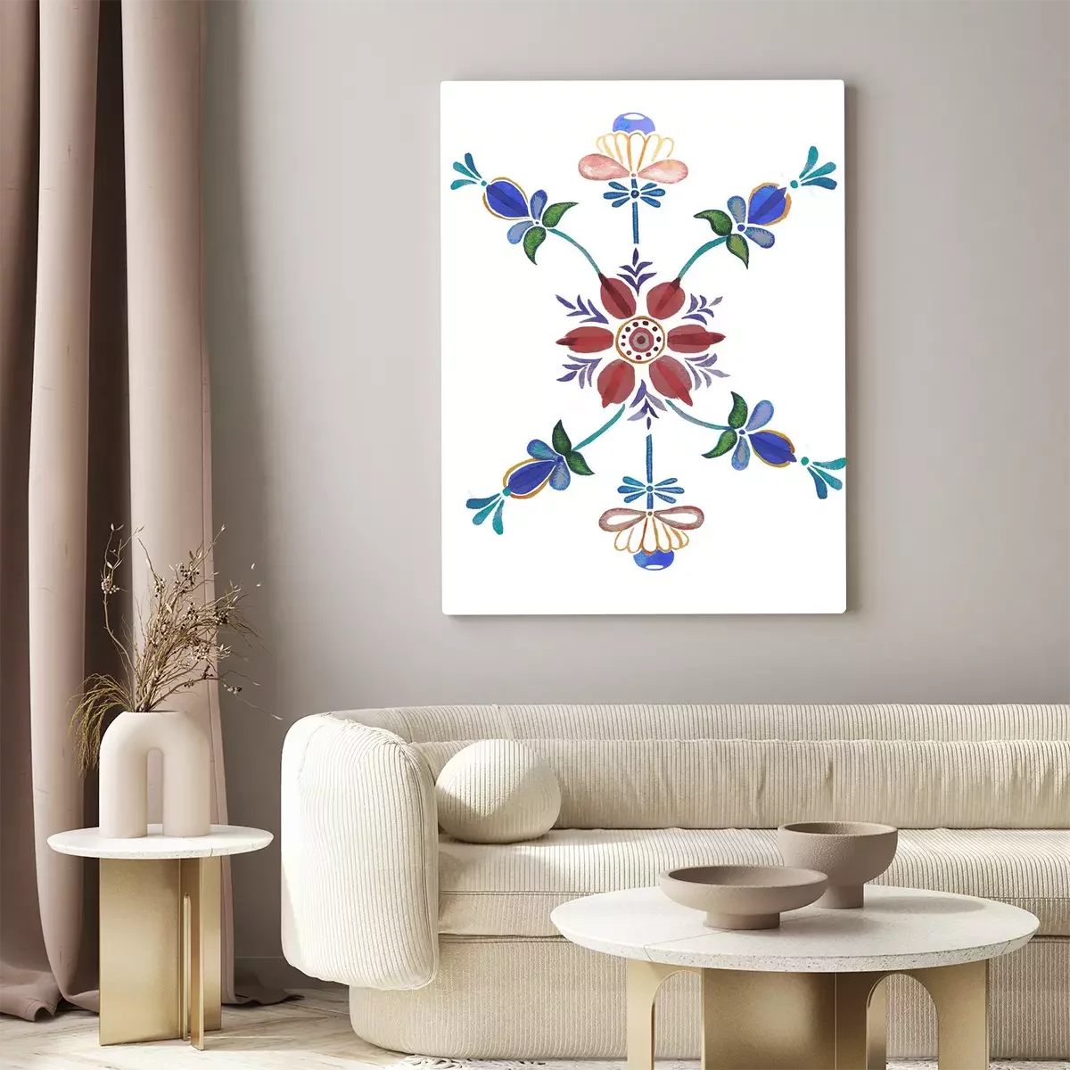 Canvas: hand drawn watercolor floral ornament in scandinavian style