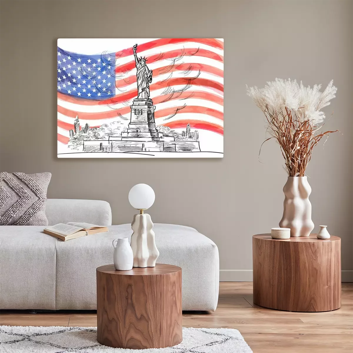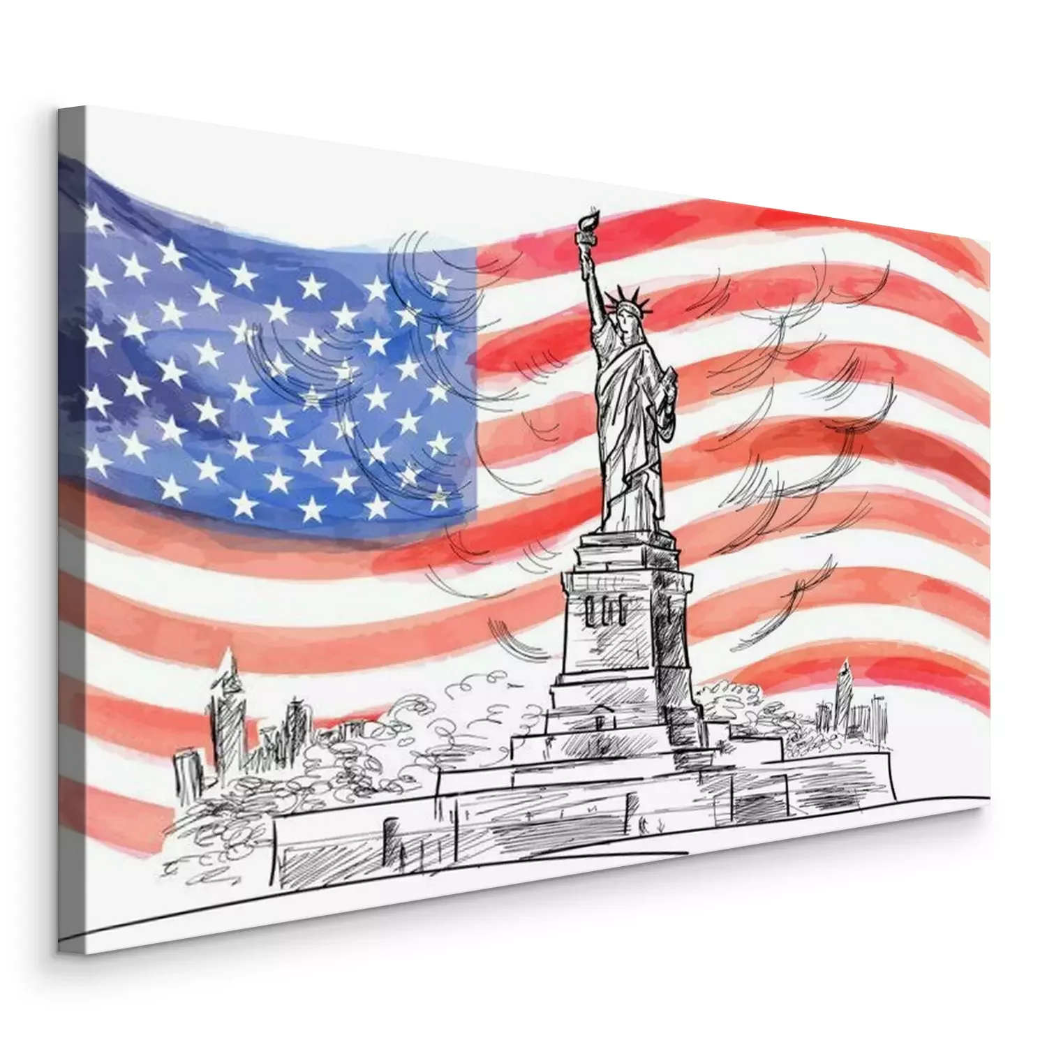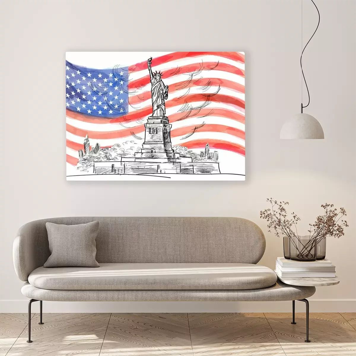 Canvas: Hand getekende schets van het Amerikaanse symboolbeeld van Liberty. Waterverf vector vlag van de VS. Gemaakt met aangepaste kwasten, niet automatisch tracing.