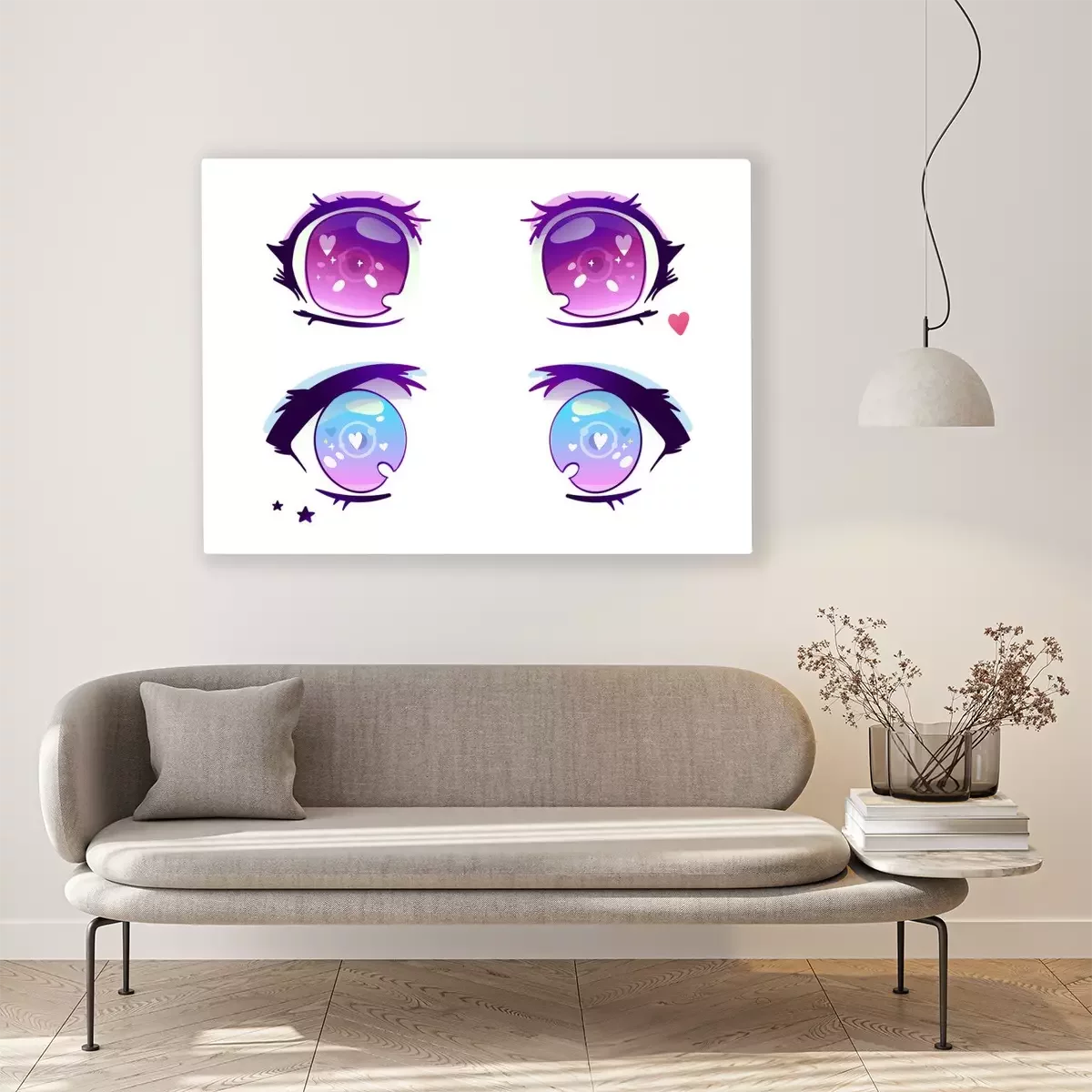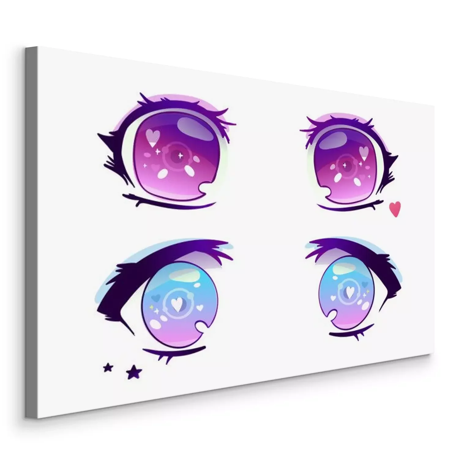 Canvas: Hand getrokken anime-ogen. Gekleurde vector set. Alle elementen zijn geïsoleerd